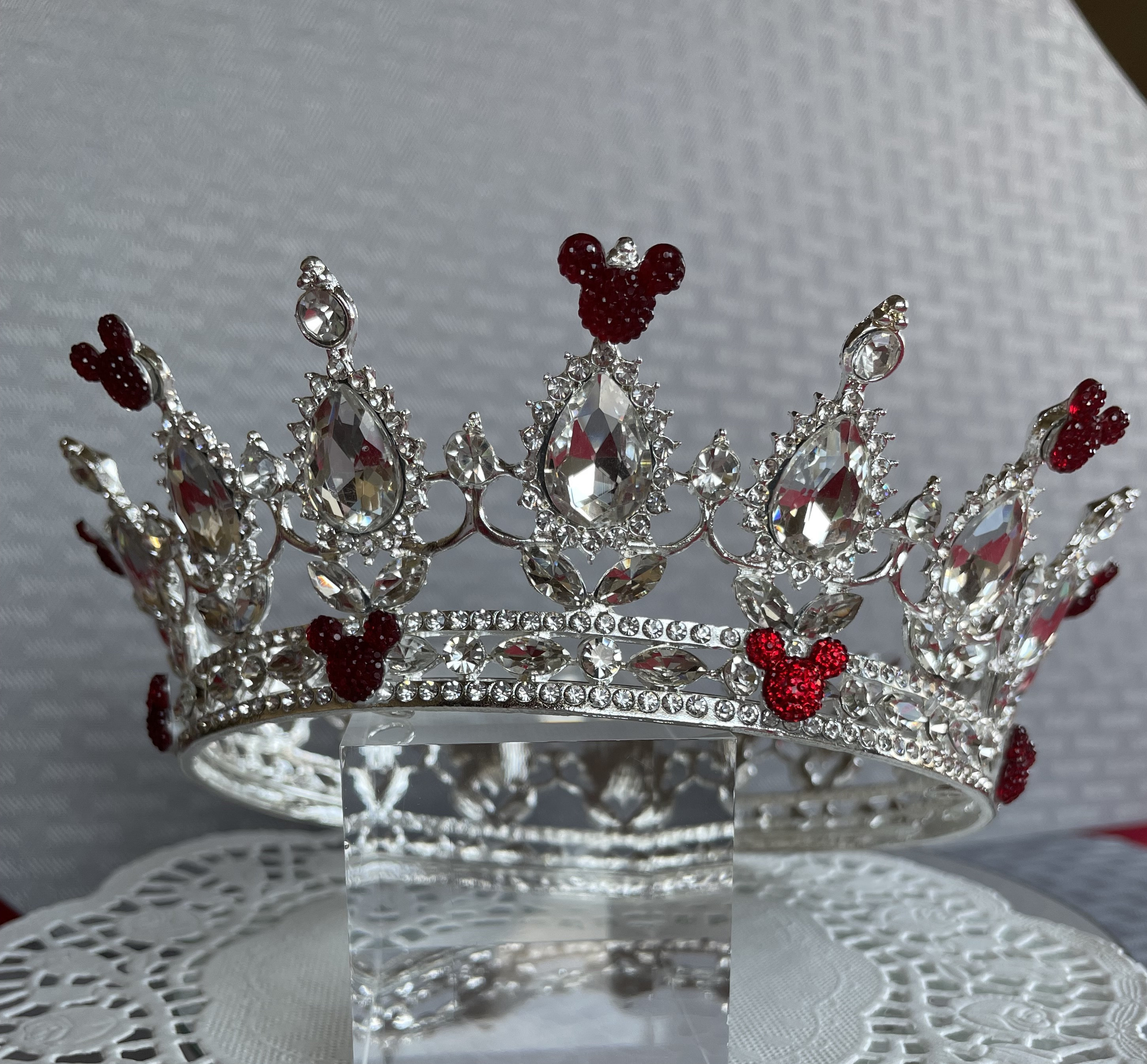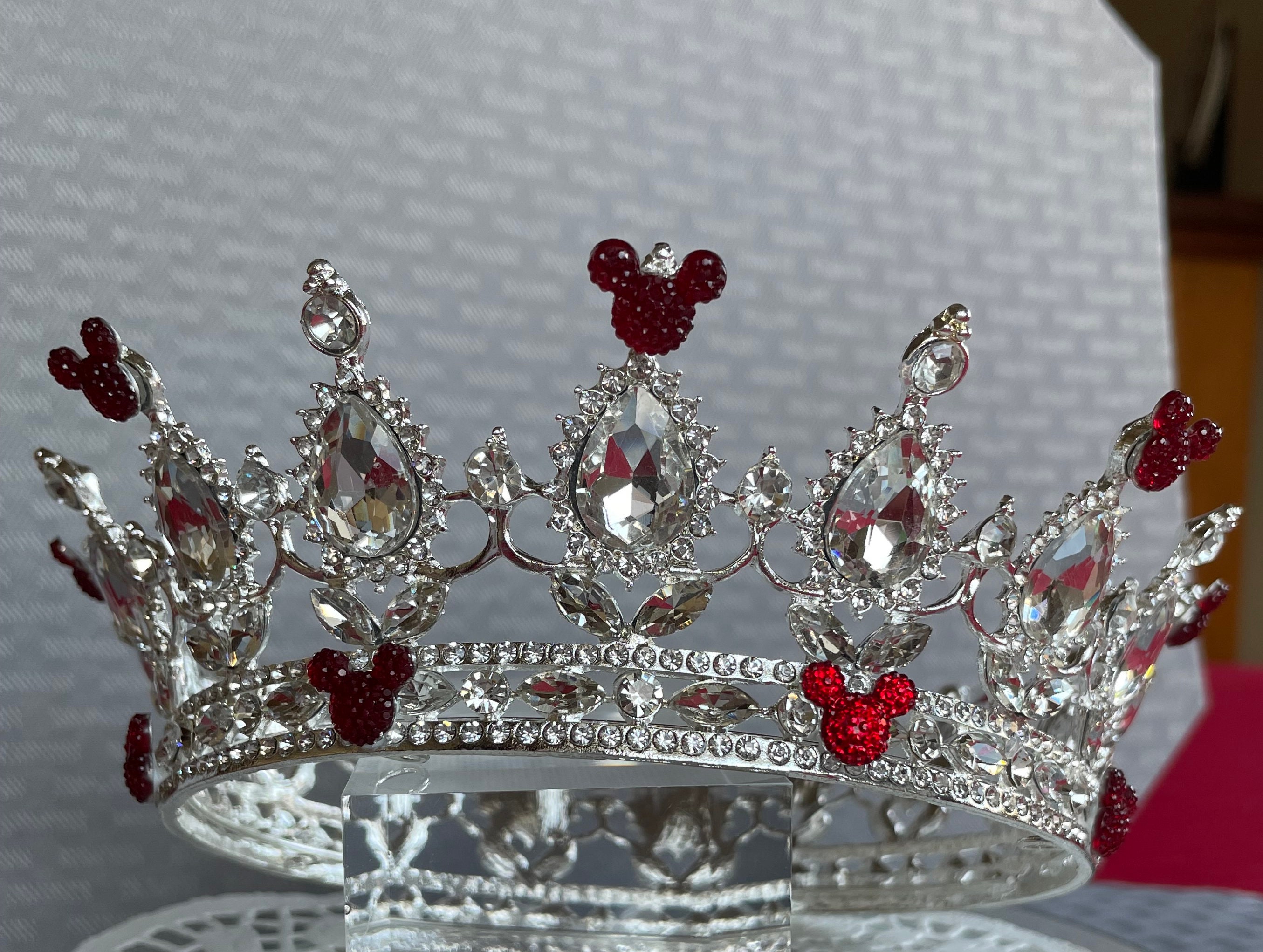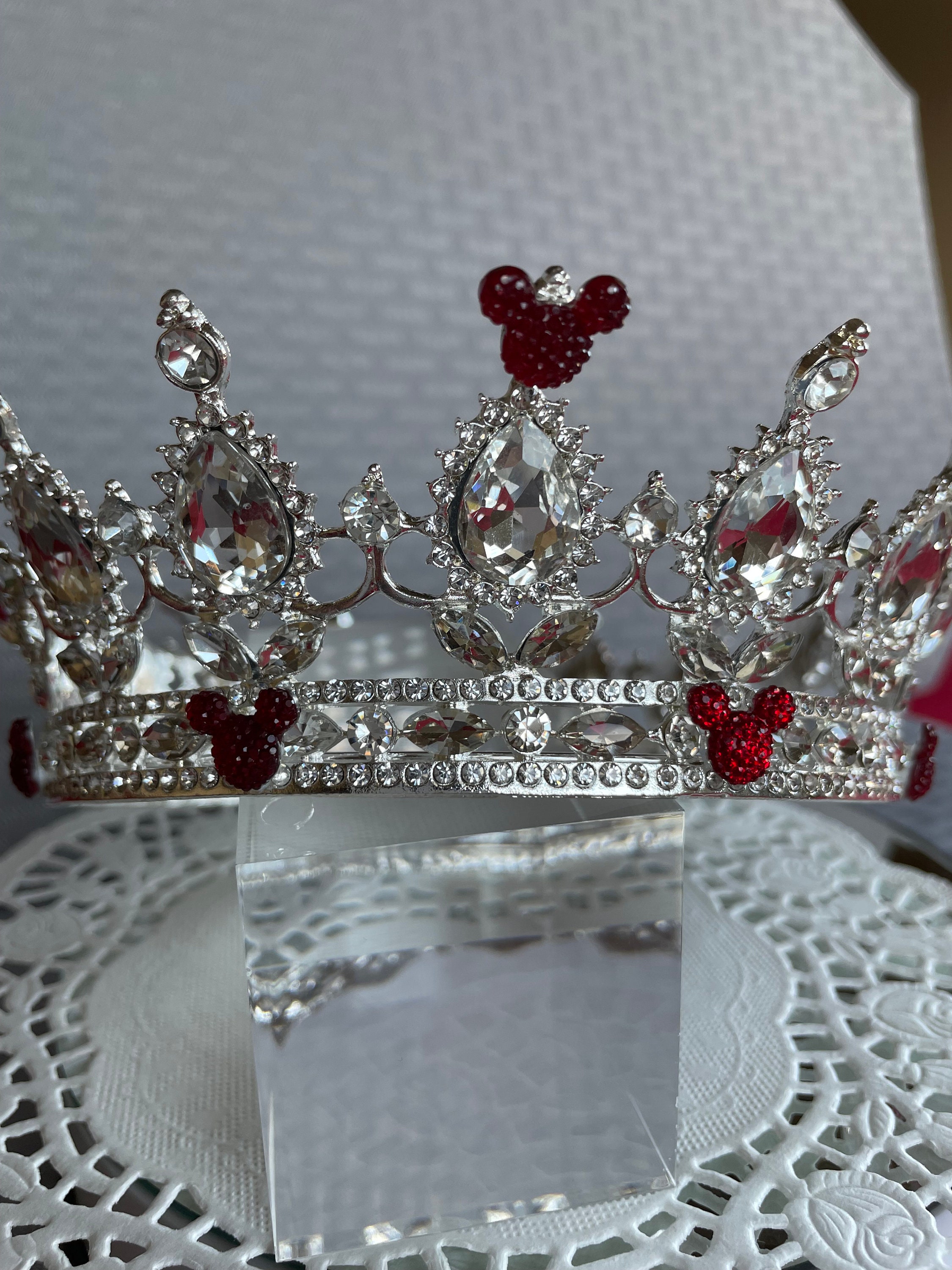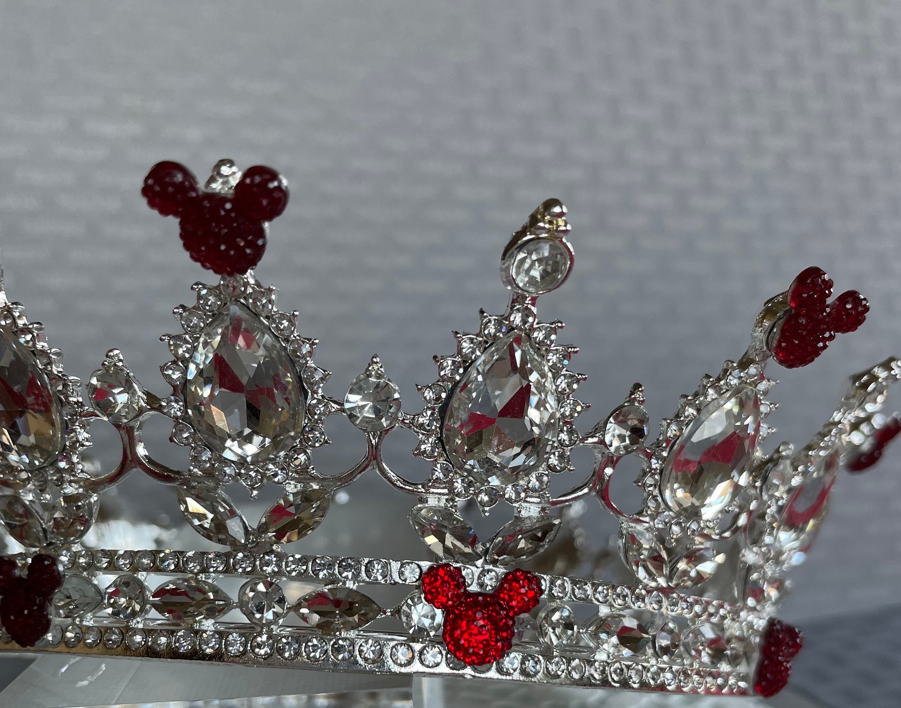 Disney Inspired Crown-Wedding Crown-Full Circle Crown-Disney Cruise-Bridal Shower Gift-Red on Silver
