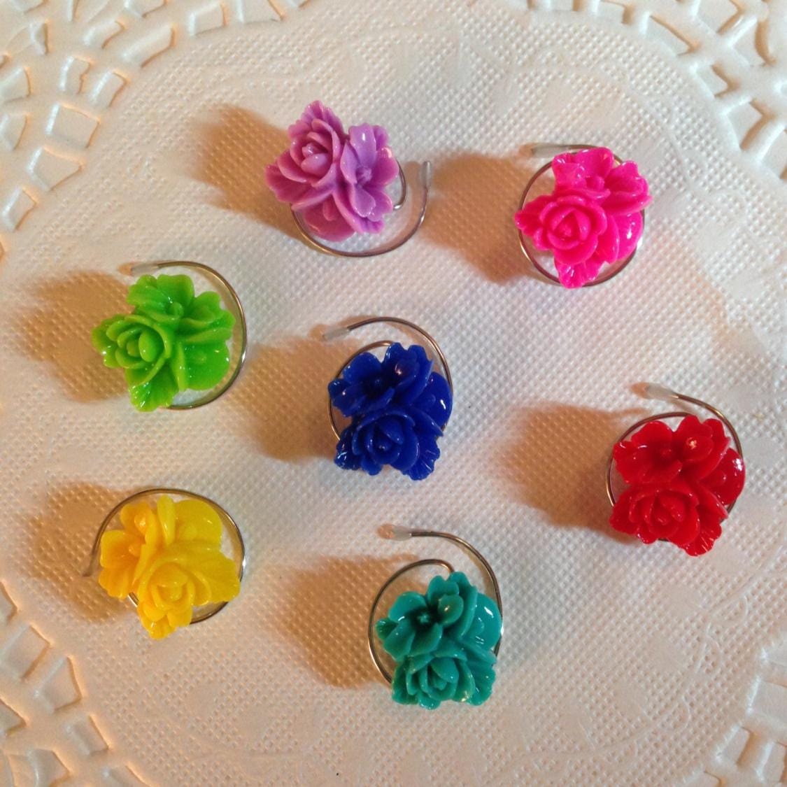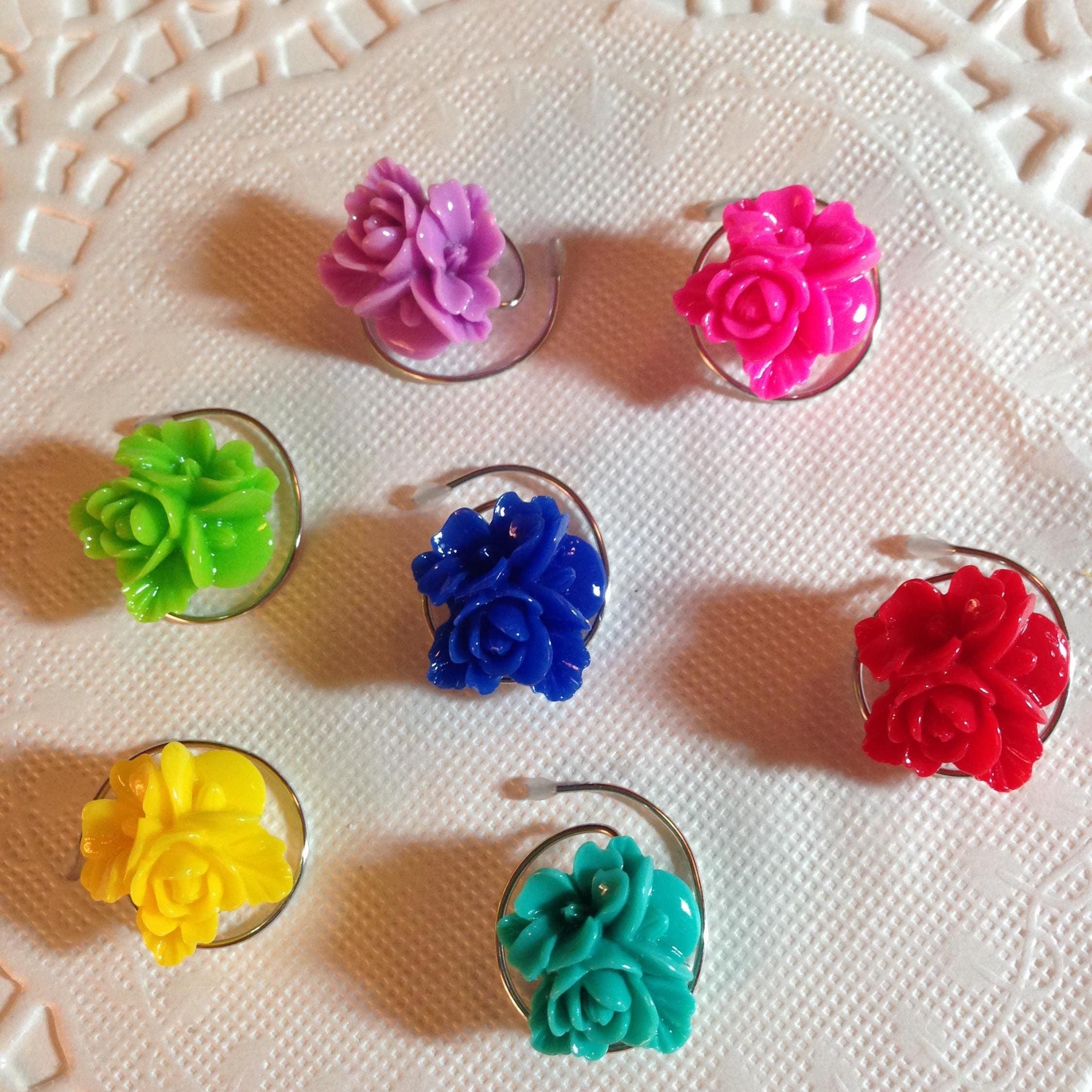 Hair Swirls Spin Pins Spirals in Rainbow Colored Flowers