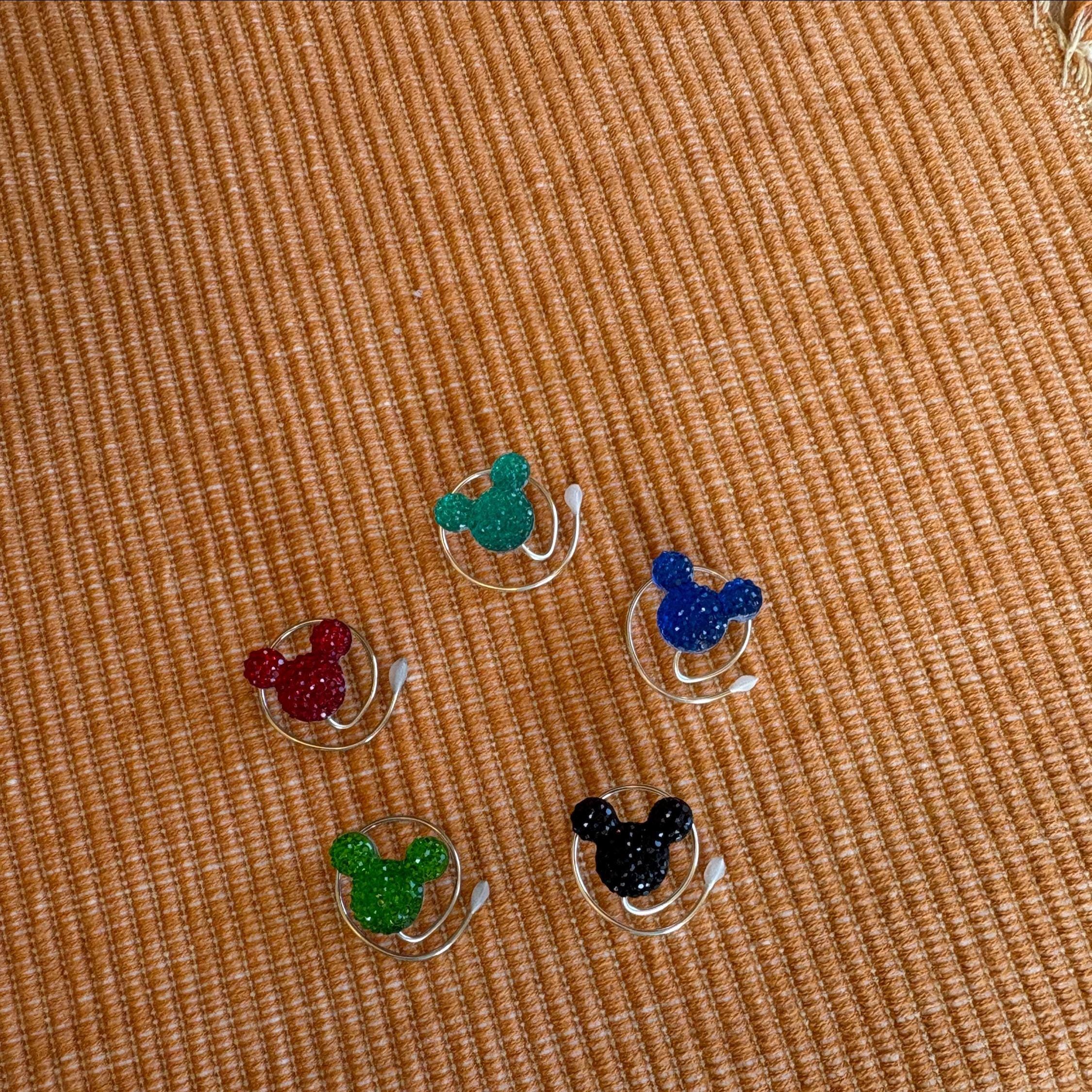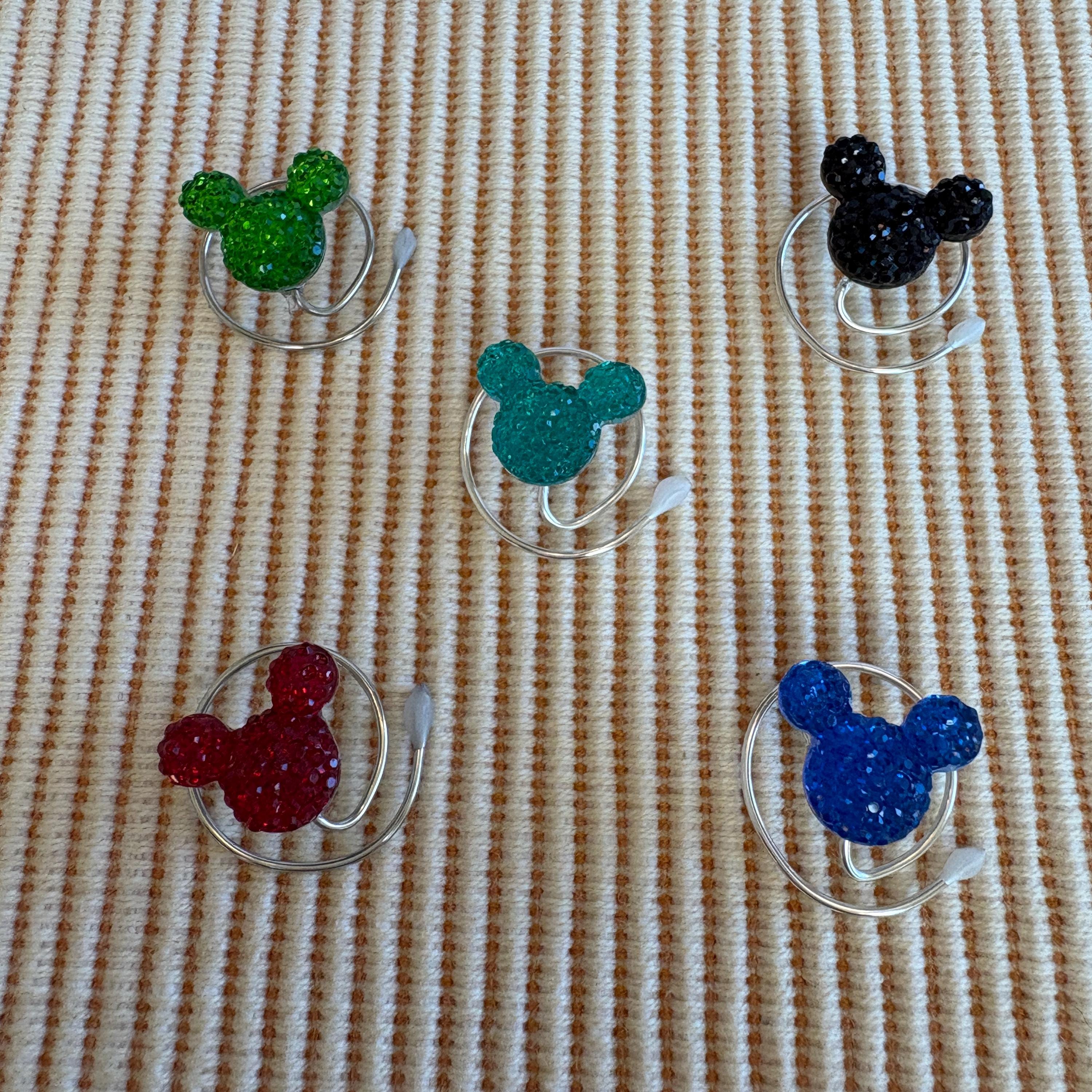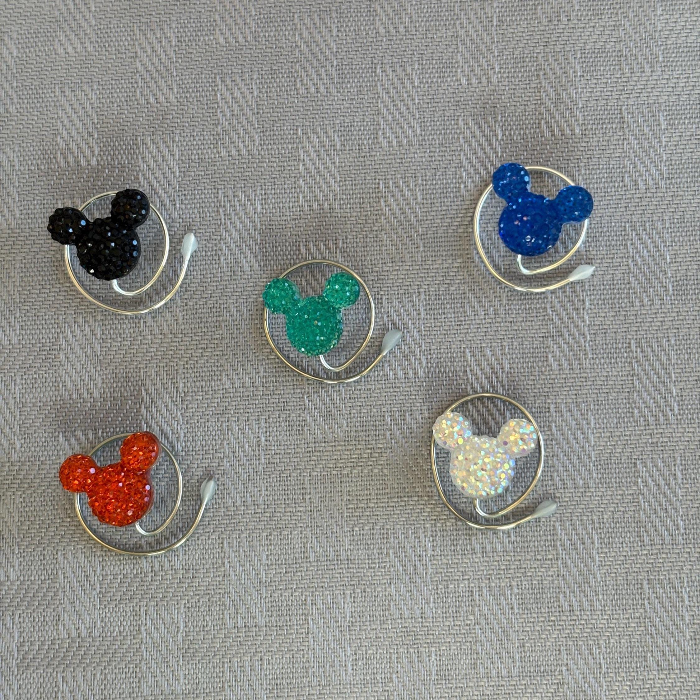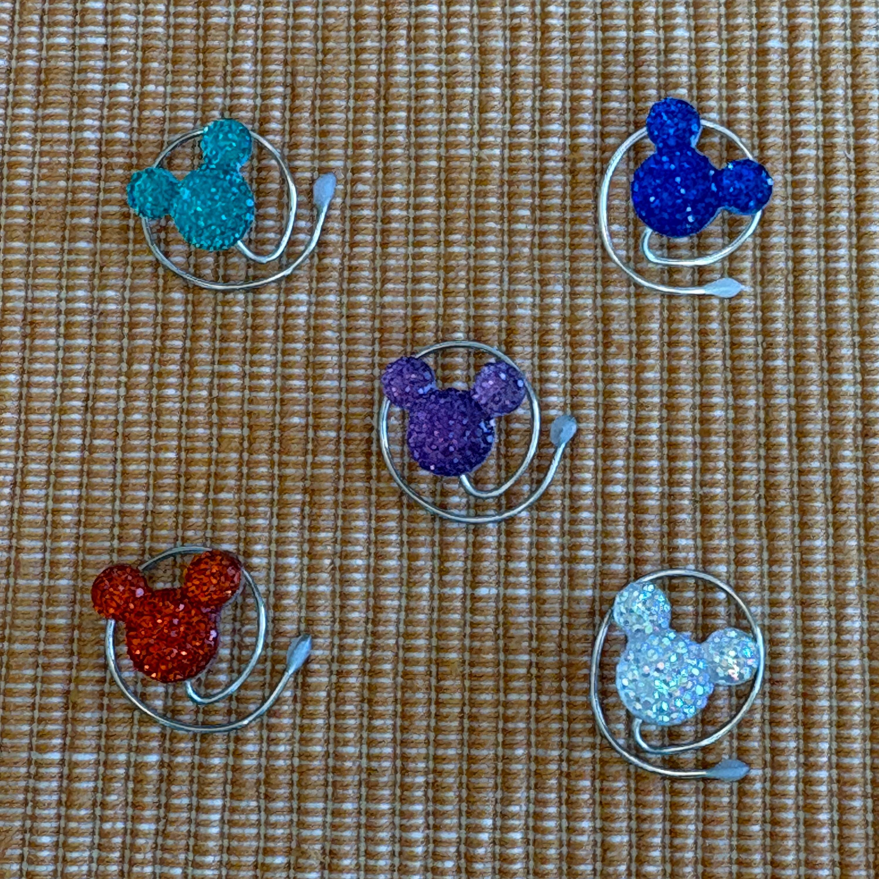 What can I say about these little mouse ears.  These are my best rhinestones since 2012.  Even though they are acrylic, I am calling them rhinestones as they have more sparkle than any other rhinestone I use for my hair swirls.  You won't be disappointed in these.  This listing is for  5 pieces of hair jewelry consisting of darling tiny Dazzling Mouse Ear Hair Swirls. Each mouse is about 1/2 inch in size. Each tiny mouse has many tiny facets that sparkle when light hits them.  They are mounted on a tarnish resistant silver tone wire. They come in lots of colors.