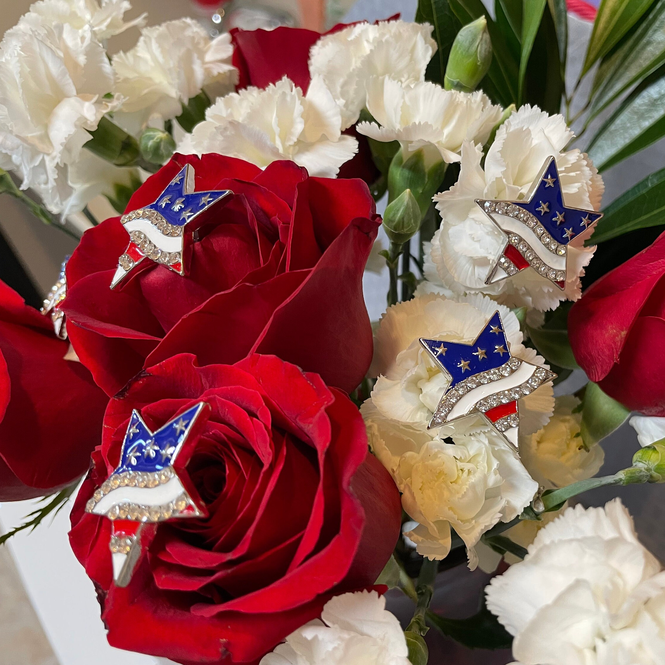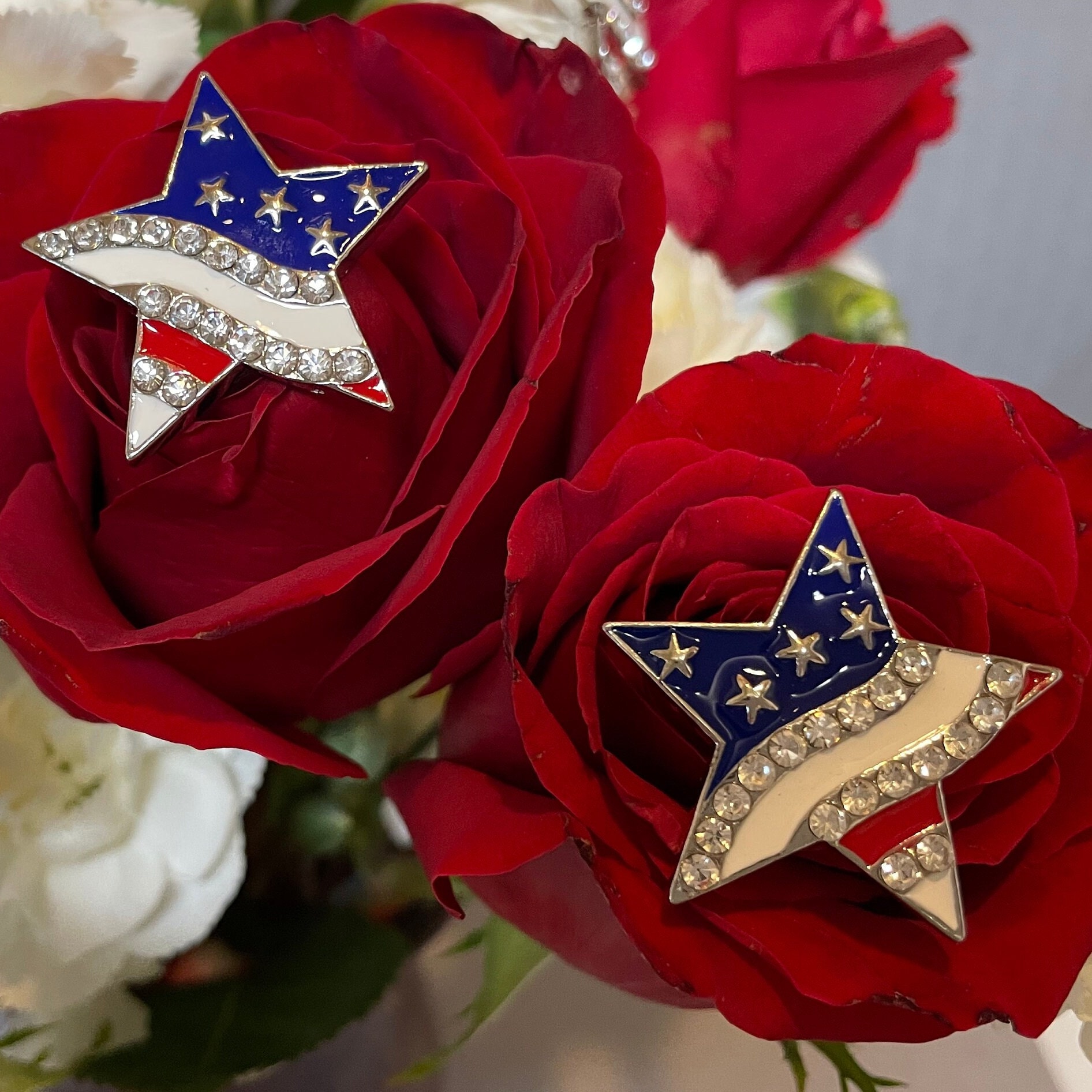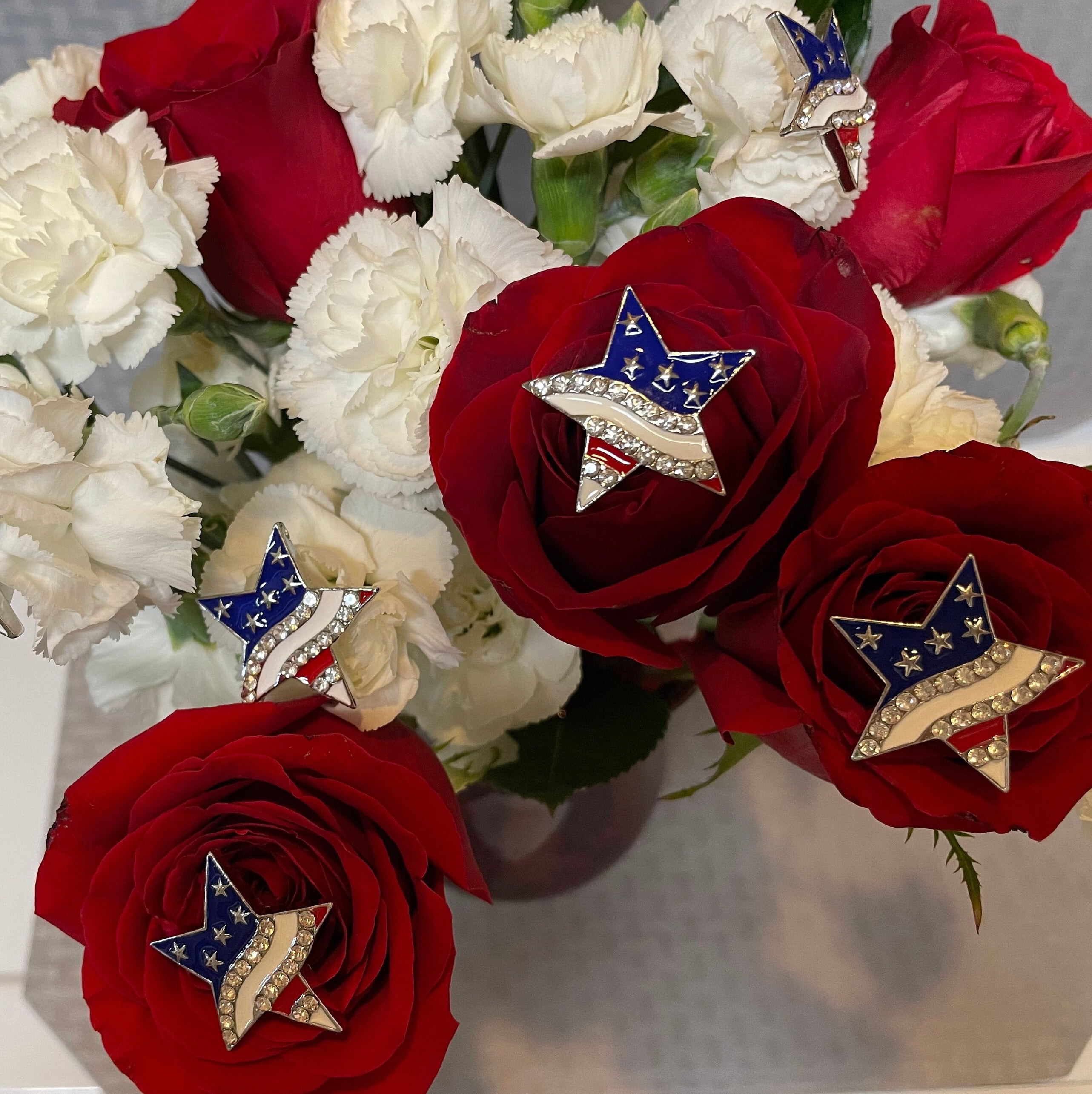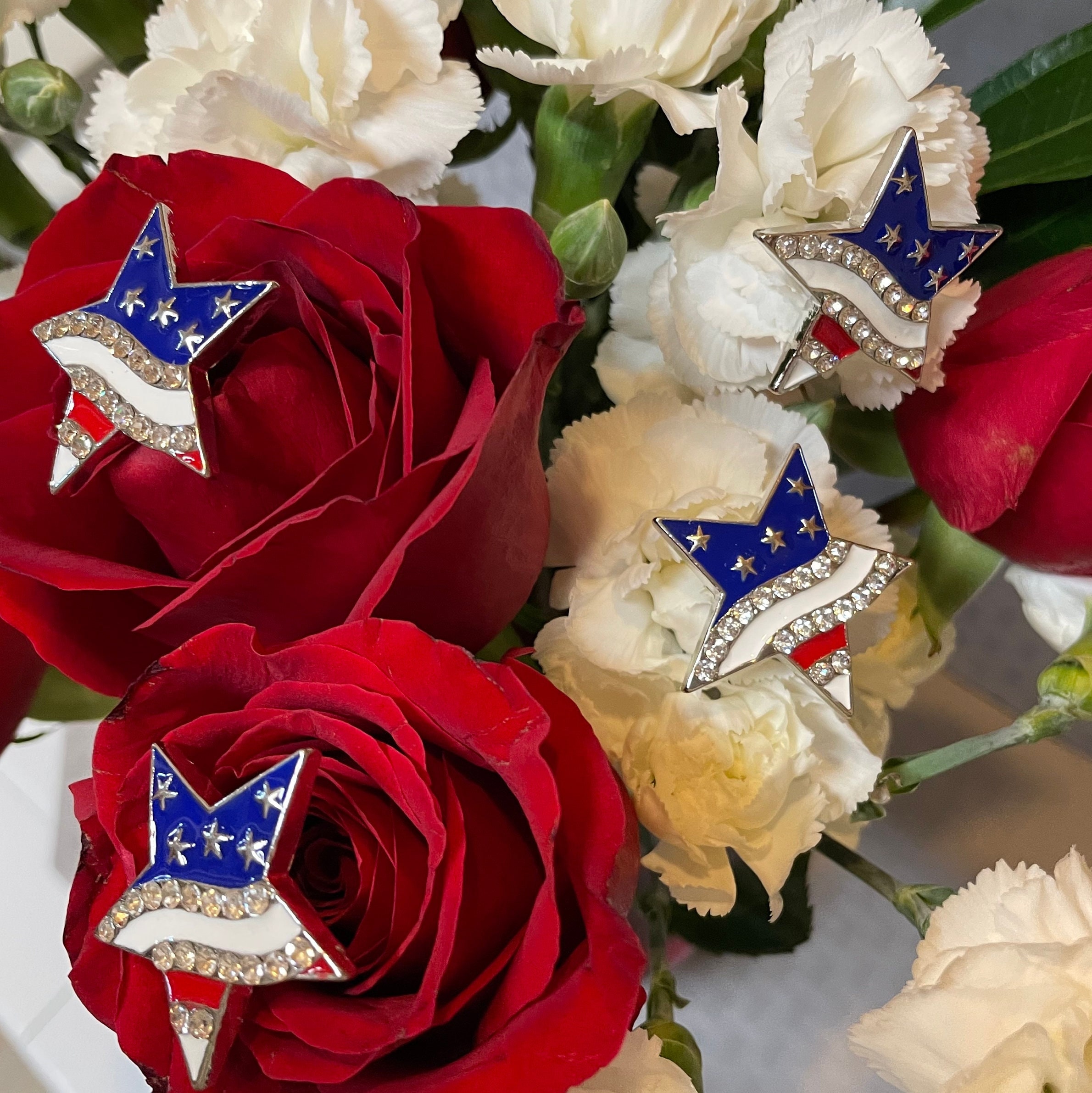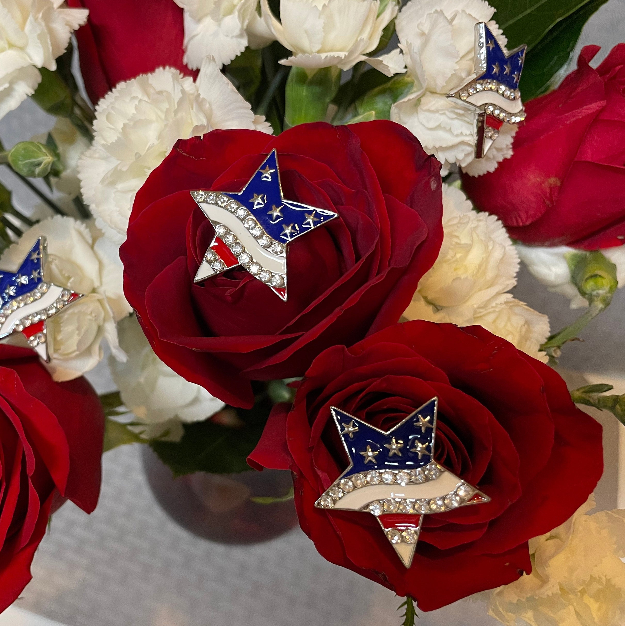 Set of 5 red, white, and blue stars mounted on 1.5 very sharp pins