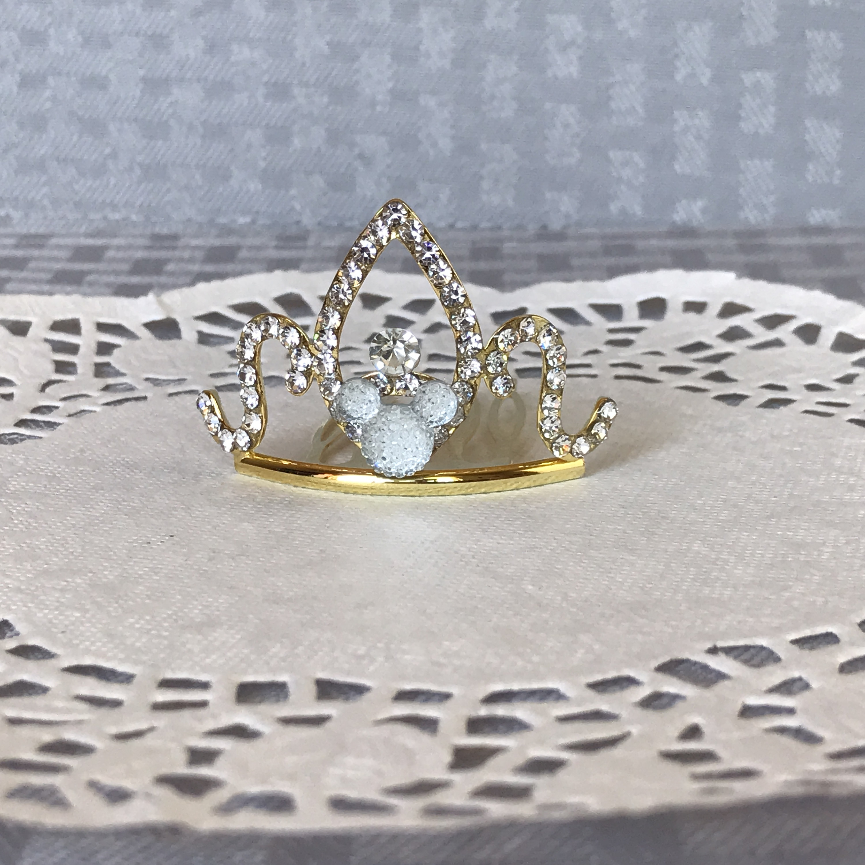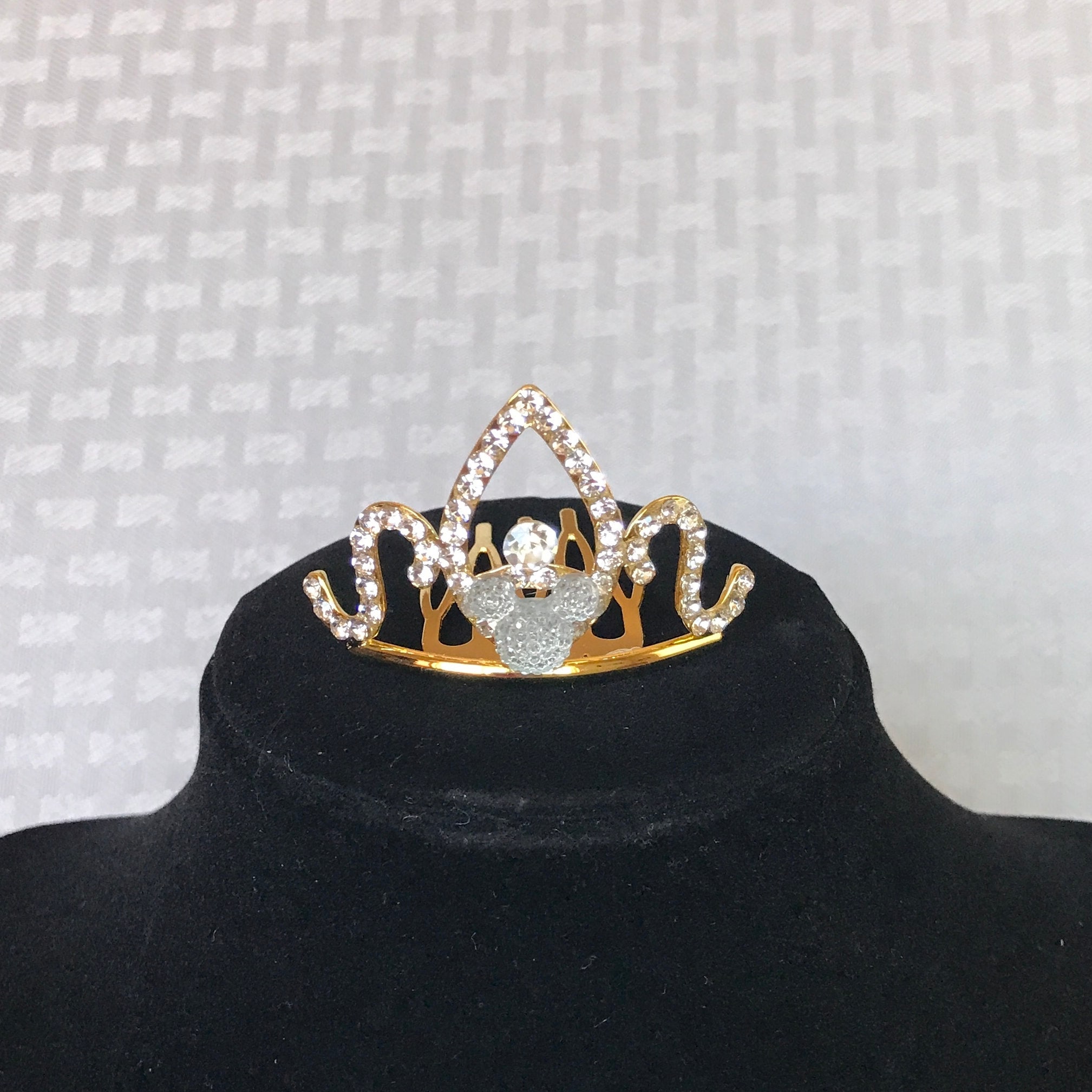 There is a tiny clear mouse head silhouette attached to the center of the tiara.