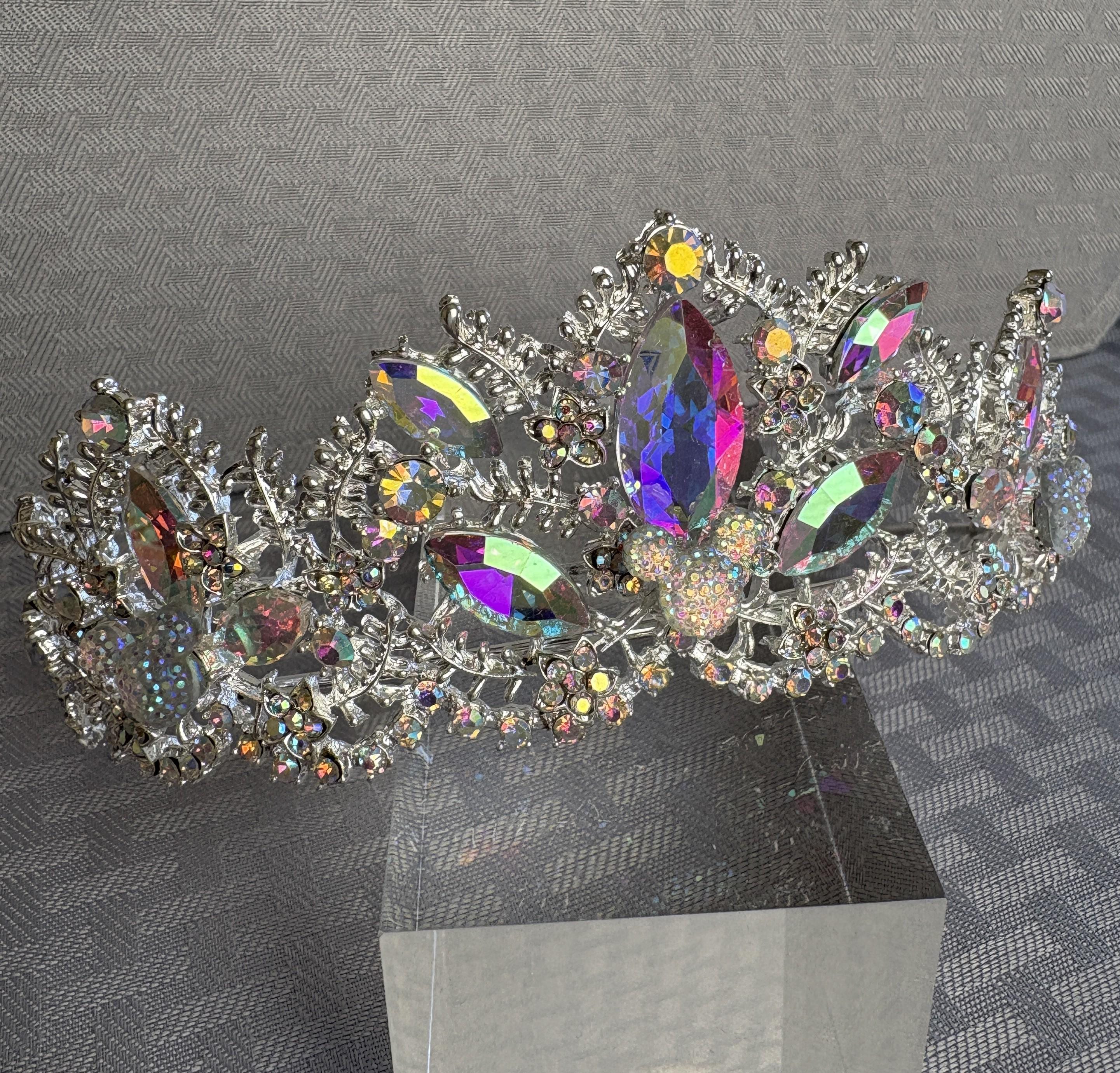 Disney Inspired Wedding-Gorgeous Crystal Clear and Clear AB Rhinestone Jeweled Tiara-Silver Tone Setting-Hidden Mickey