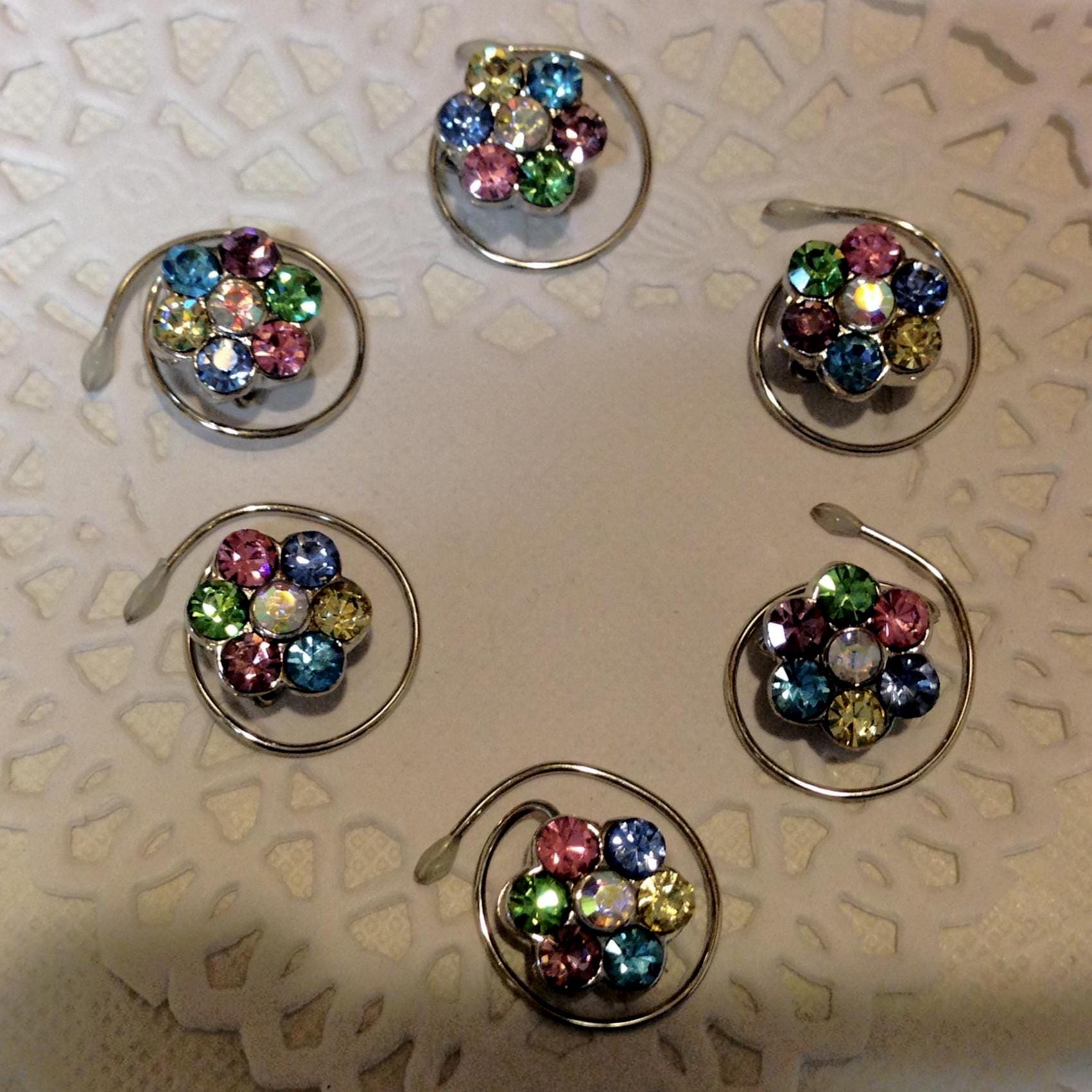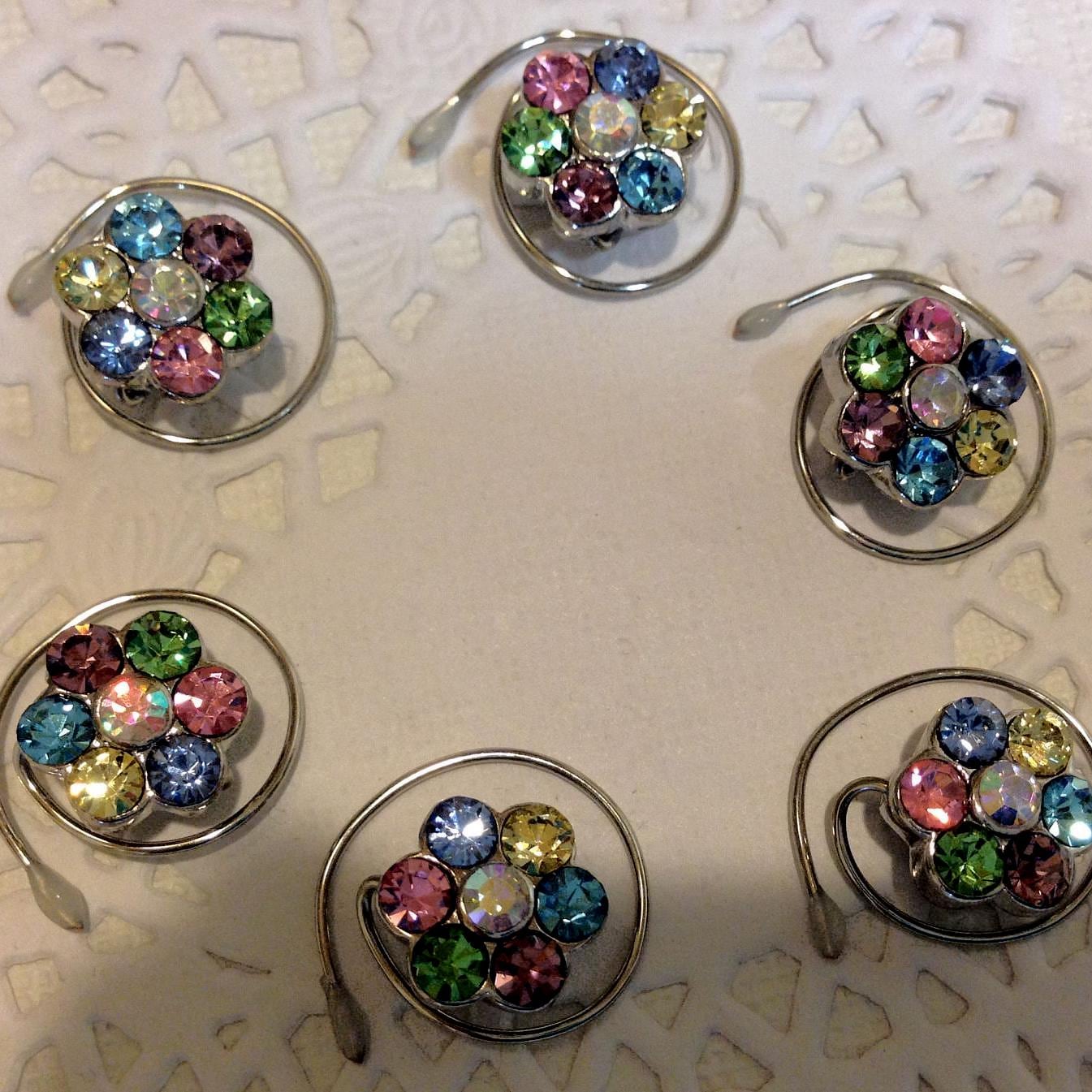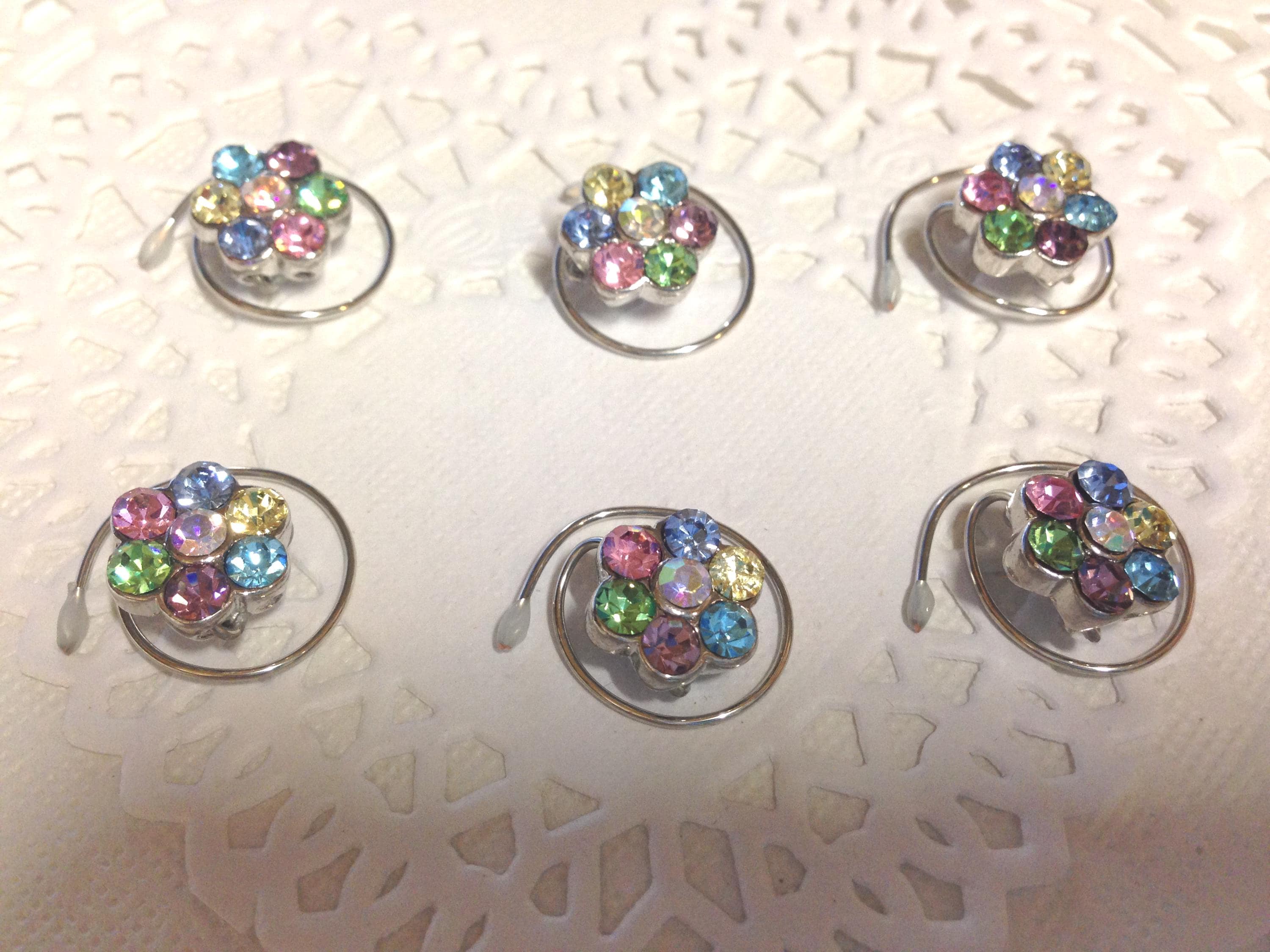 Beautiful Sparkling Rainbow Flower hair swirls in a set of six.
