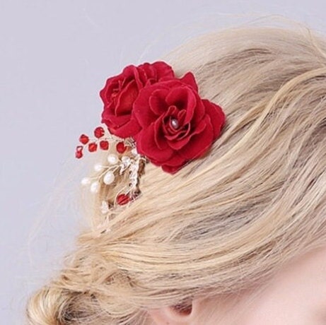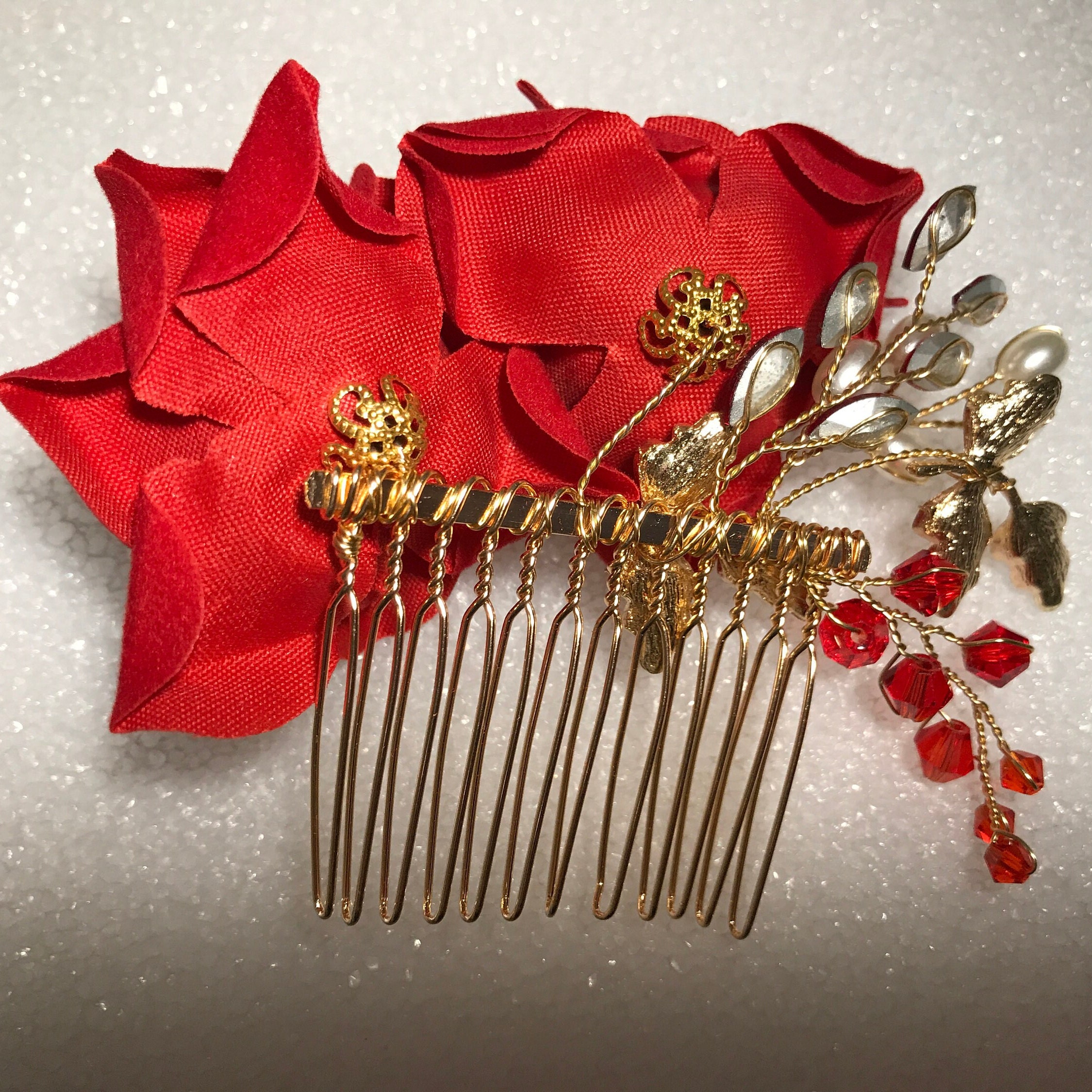 2 Artificial Red Roses adorn this comb and are three inches across.