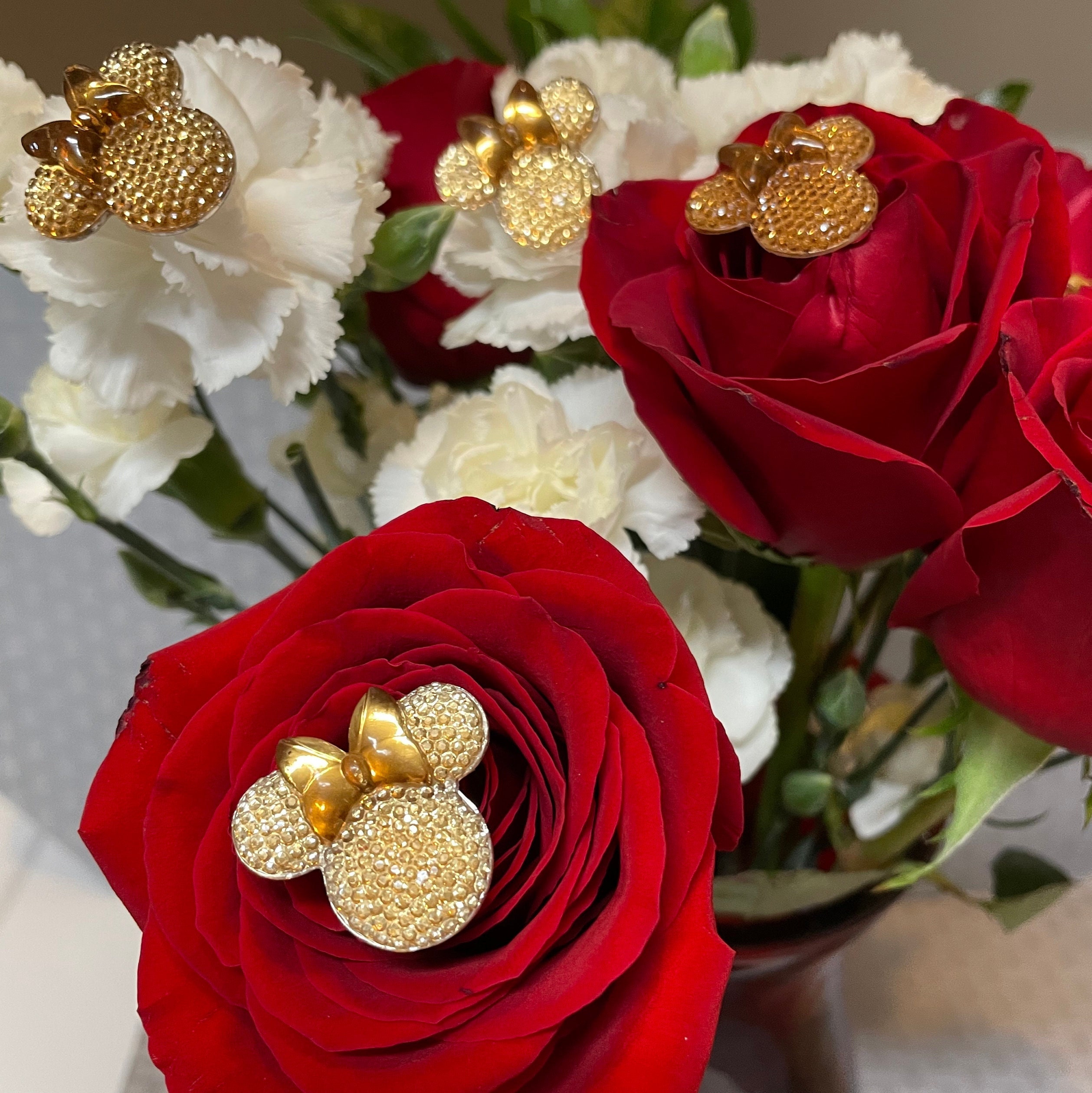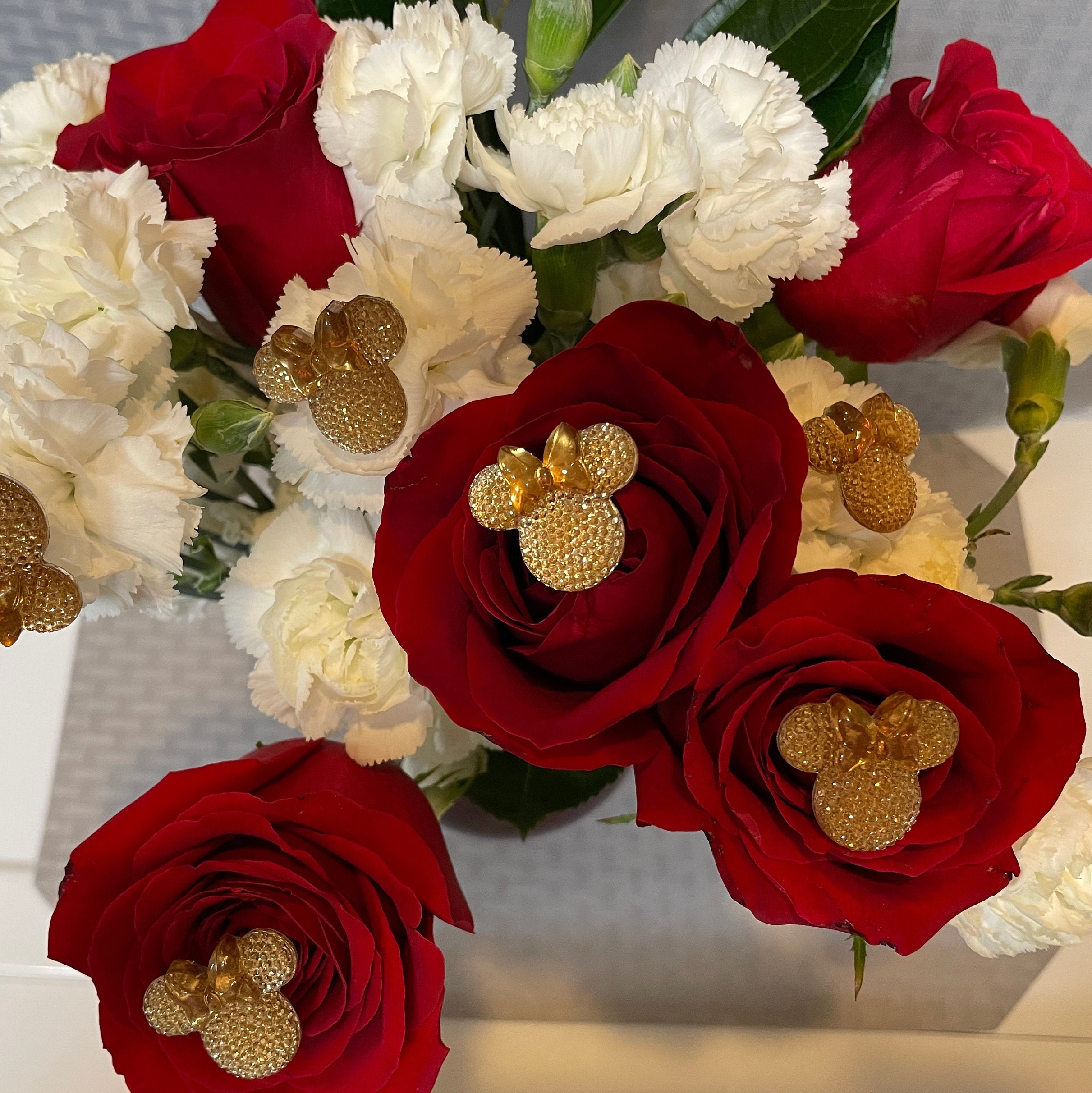 Minnie Mouse Flower Pins-Disney Wedding Bouquet Flower Pins-Mouse Ears Bouquet Picks for Bouquets, Centerpieces, Corsages and Boutonnieres.