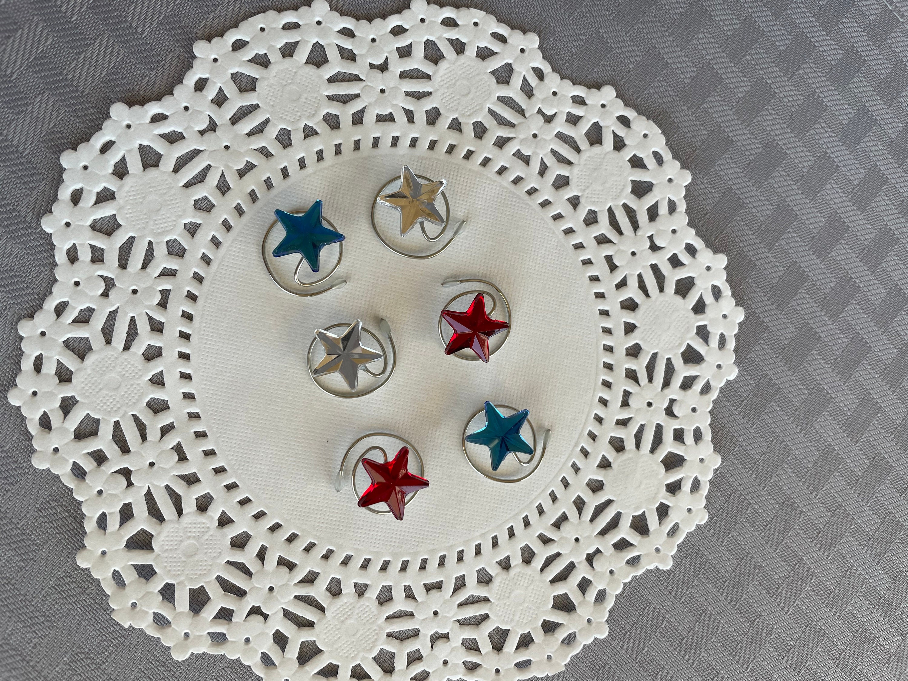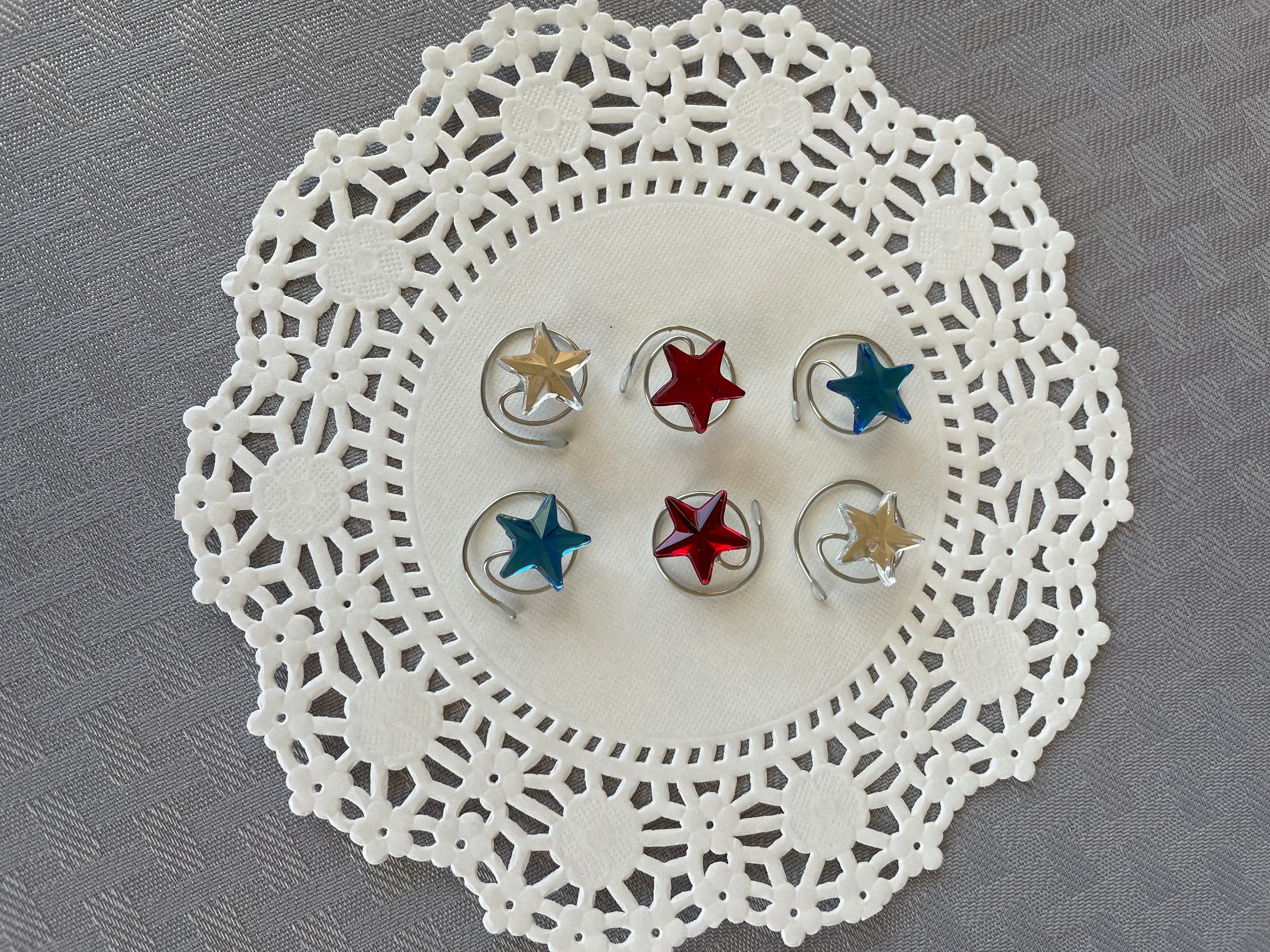 This mixed set of red, white, and blue star hair spirals is my newest creation and will be so fun to wear.