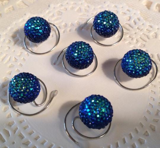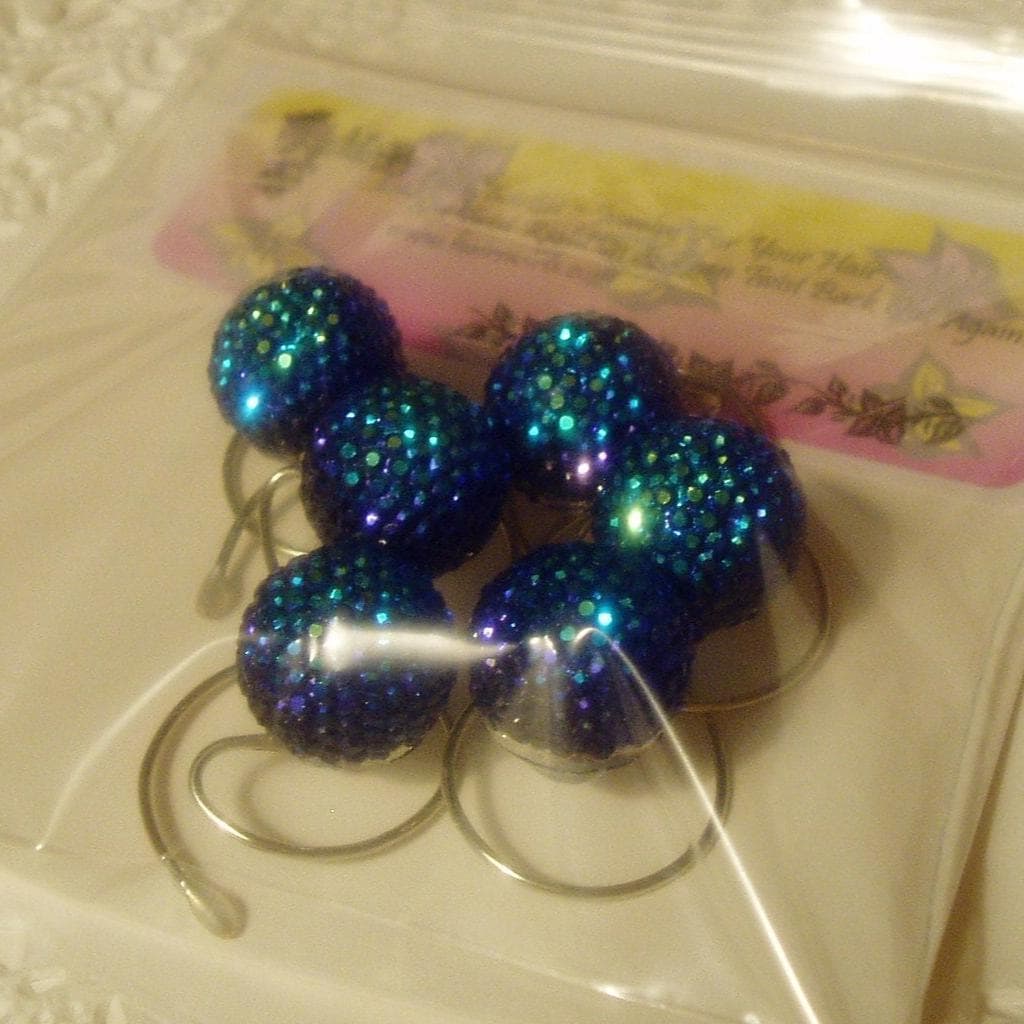 Match that bridesmaids dress with the galaxy collection of Hair Swirls. Beautifiul sparkling acrylic colors that will look dazzling in your hair. Each hair swirl is 1/2 inch in size and has a brilliant shine. Watch for other colors coming soon. This set of 6 hair swirls is all the same blue/green peacock feather color.