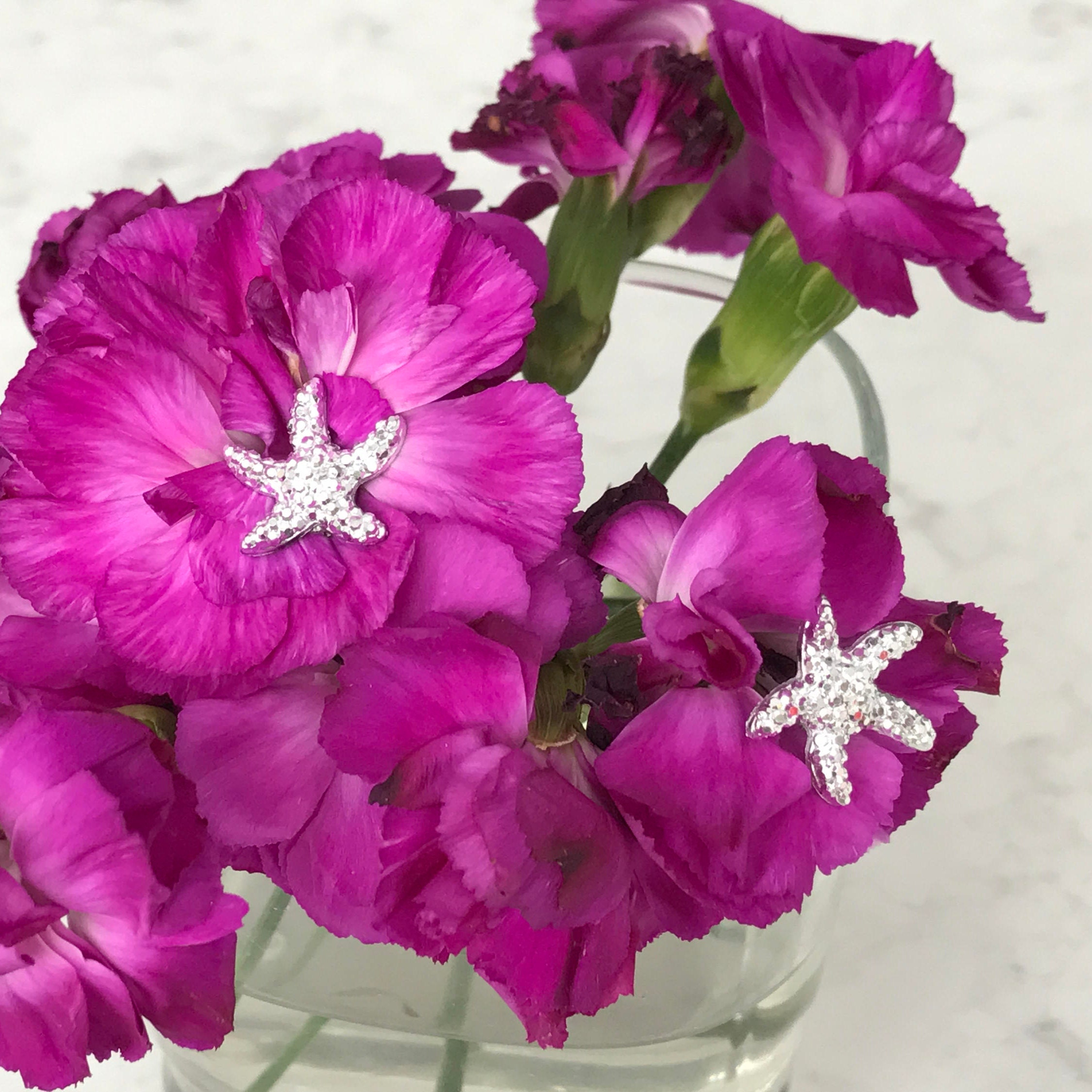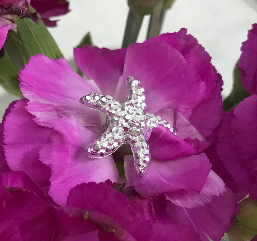 If you need a special order for your wedding party just let me know and I can make you a reserved listing for your special destination wedding. These also work in Corsages or Boutonnieres. The tiny silver starfish will look great in any color or kind of flower.