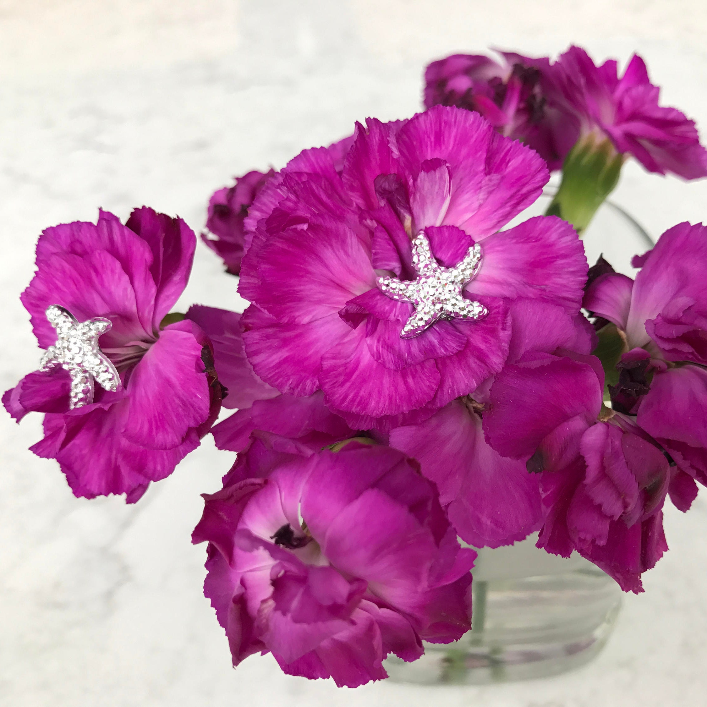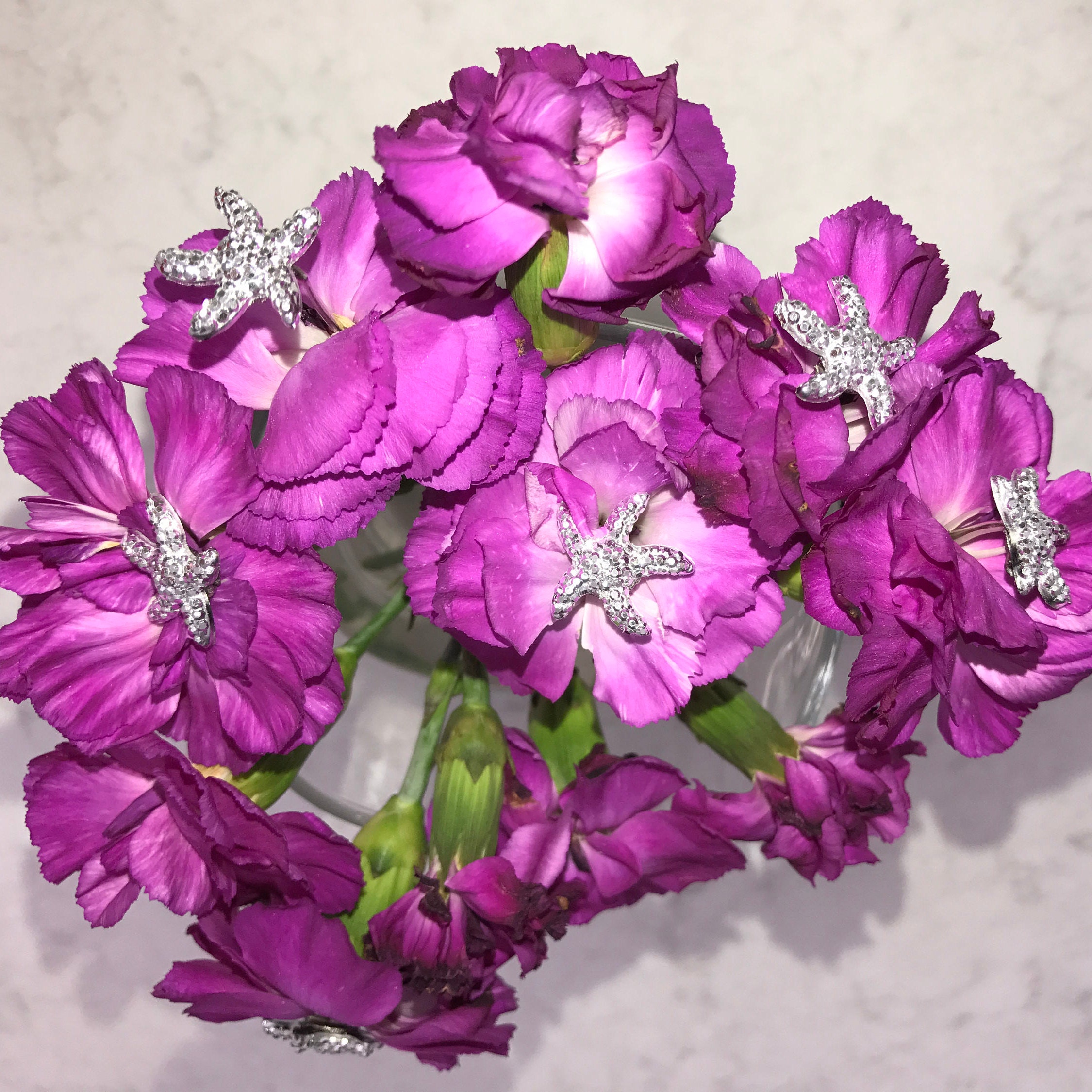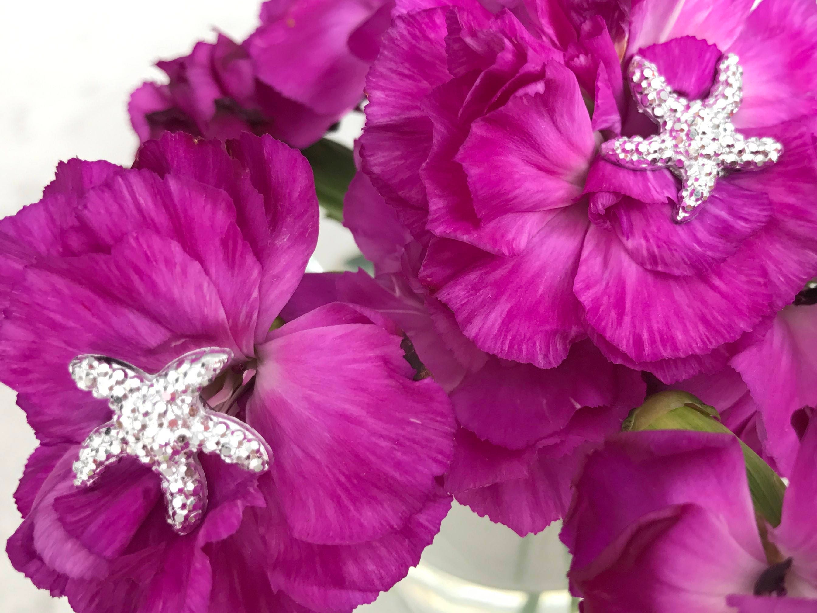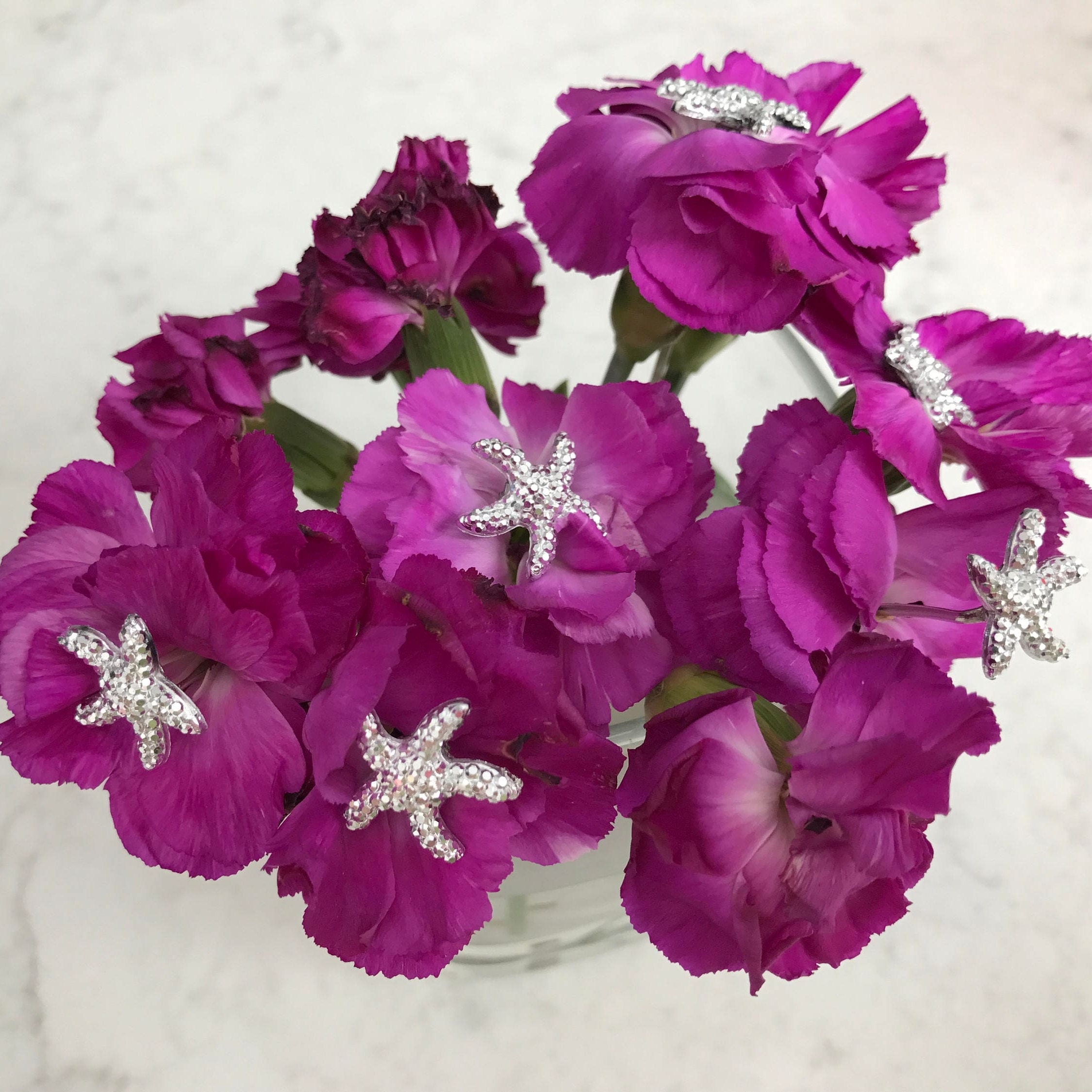 Pictured in this beautiful bouquet of flowers are silver starfish flower pins that I started making in May of 2017.