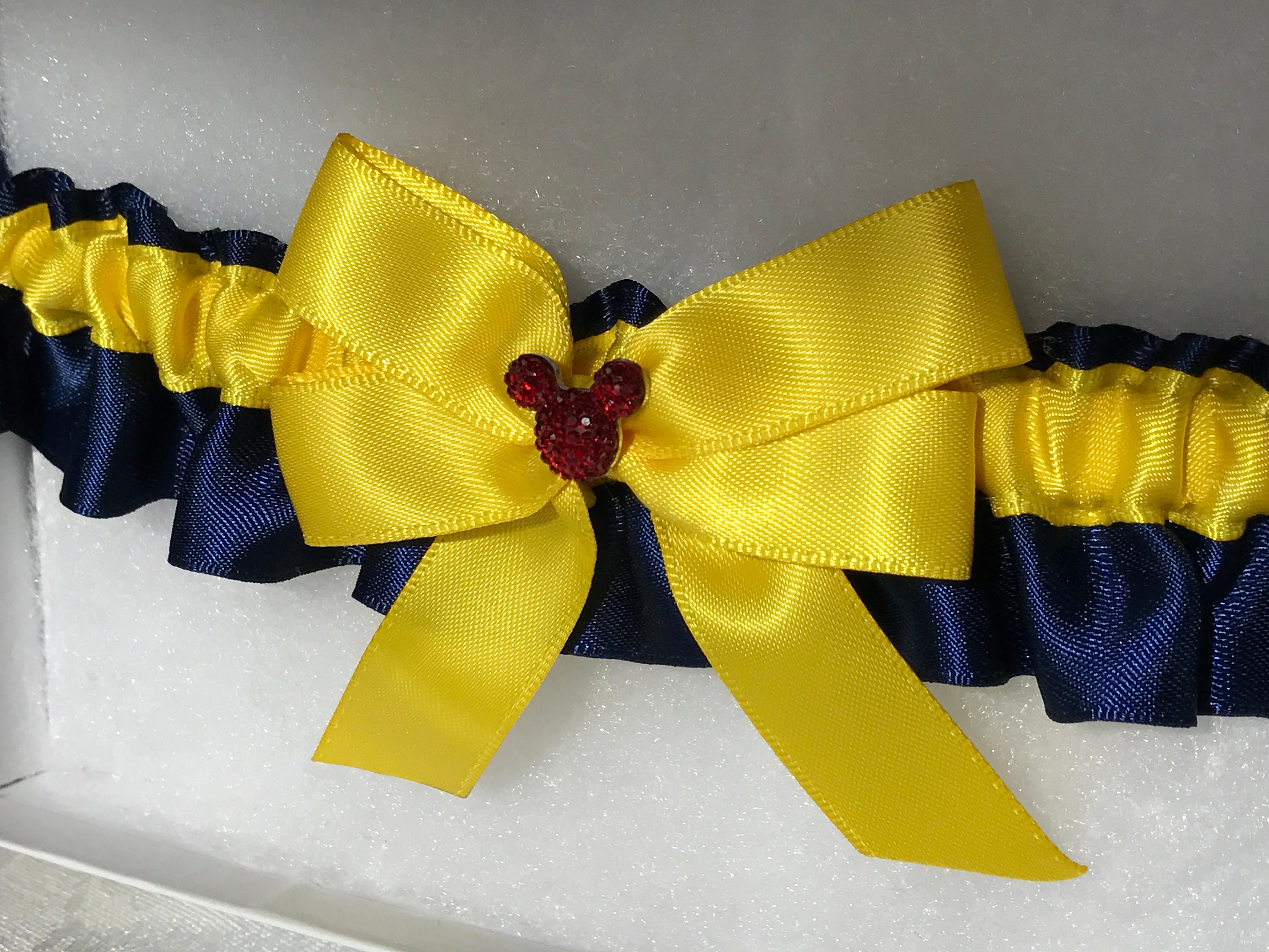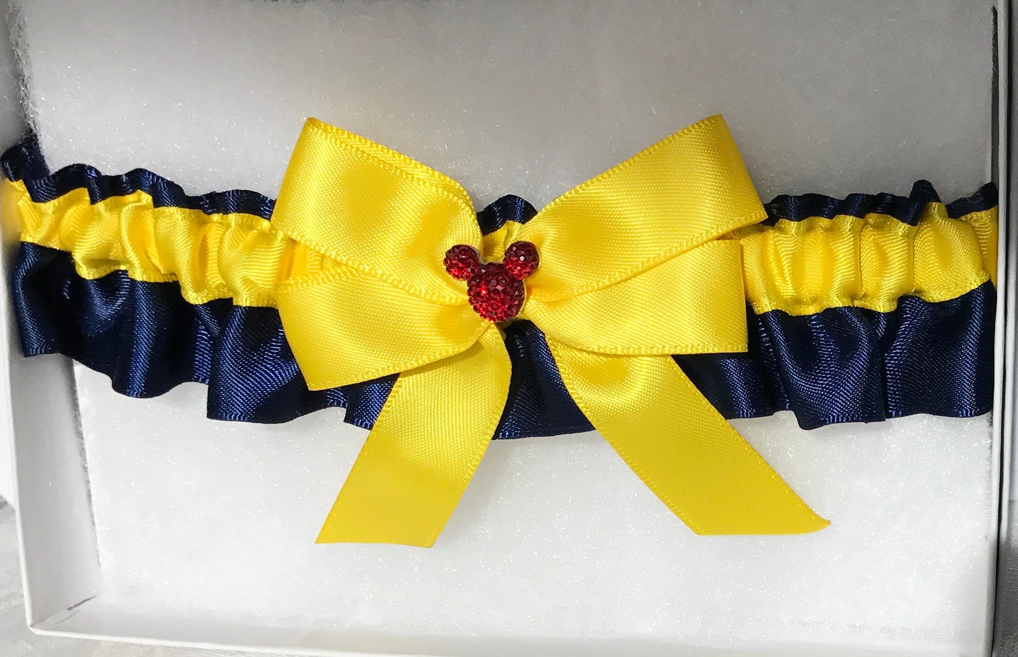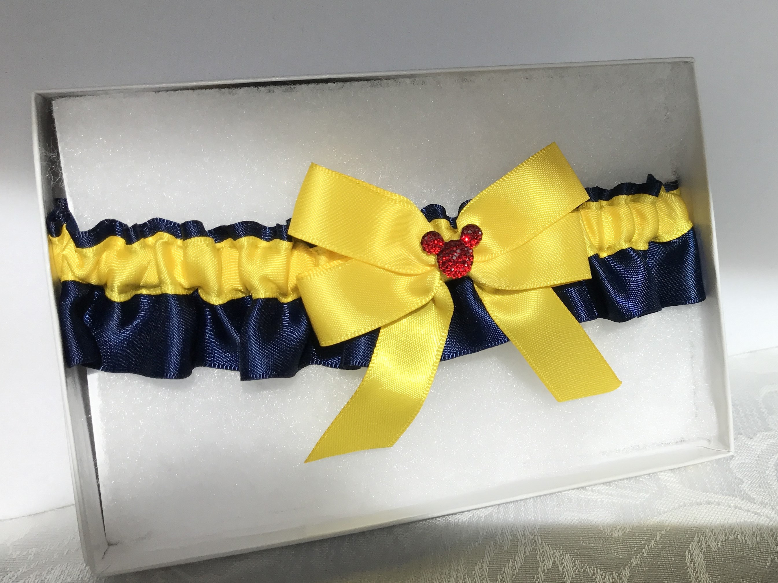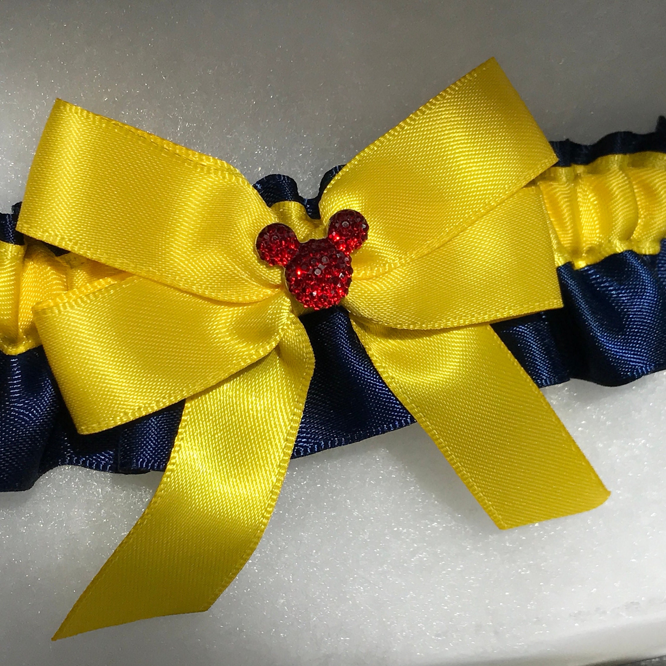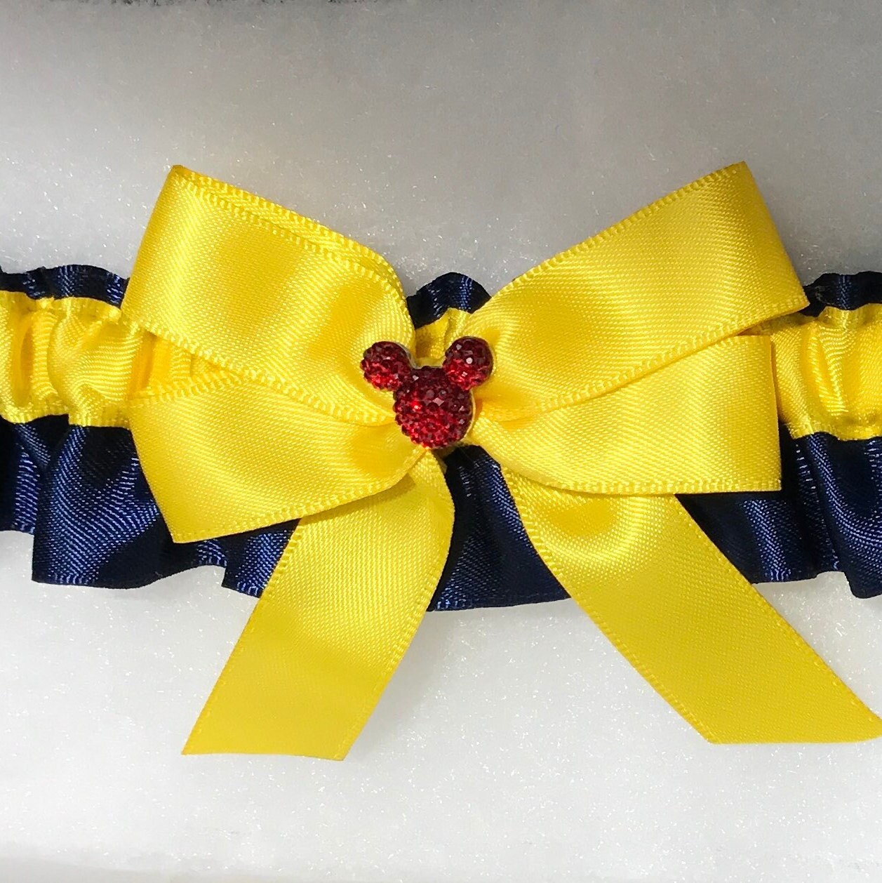 MOUSE EARS Wedding Garter-Bridal Garter-Snow White Navy and Yellow-Disney Shower Gift