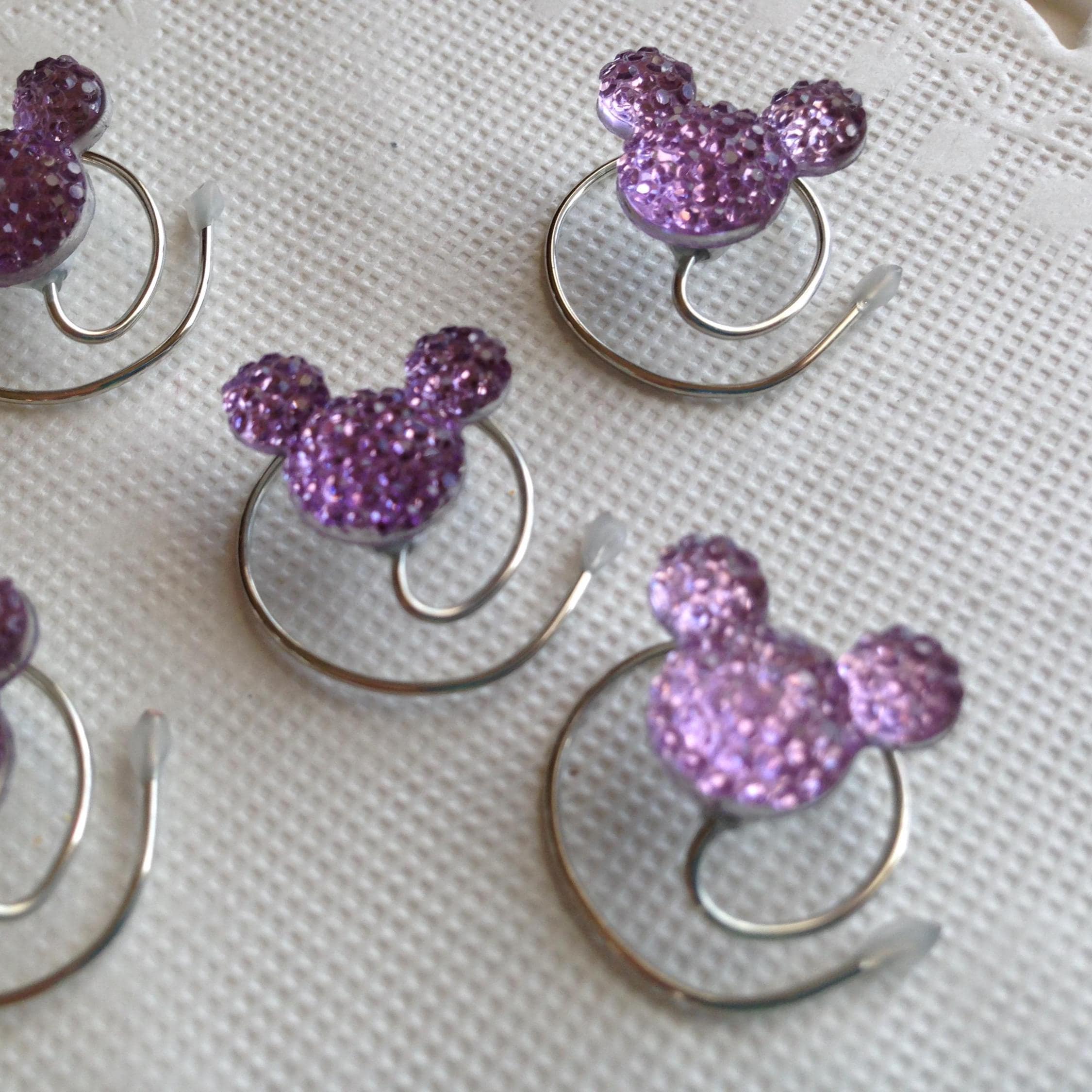 This listing is for 5 pieces of hair jewelry consisting of darling tiny Dazzling Lilac Mouse Ear Hair Swirls. Each tiny lilac mouse is about 1/2 inch in size. Each tiny mouse has many tiny facets that sparkle when light hits them. The tiny lilac mouse is mounted on a tarnish resistant silver tone wire. Mouse Ears hair coils come in lots of colors. Watch for new listings soon.